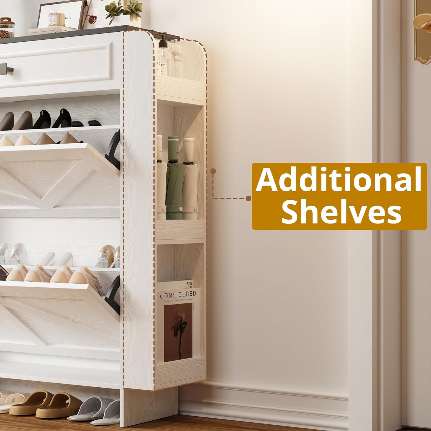- Entryway Shoe Cabinet: Hidden shoe cabinet with 2 flap doors, neat and beautiful appearance, with striking farmhouse style design, suitable for many different home styles