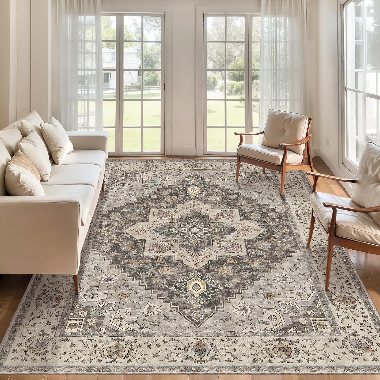 - 【Non-Slip Backing】Experience peace of mind with every step on our vintage area rug, featuring an innovative TPE non-slip rubber backing. Designed to keep your carpet securely anchored, it effortlessly holds its ground against movement and slippage. Provides safety and stability for high-traffic areas such as entrances or front doors, reducing the likelihood of people and pets slipping, making it easy to walk and play