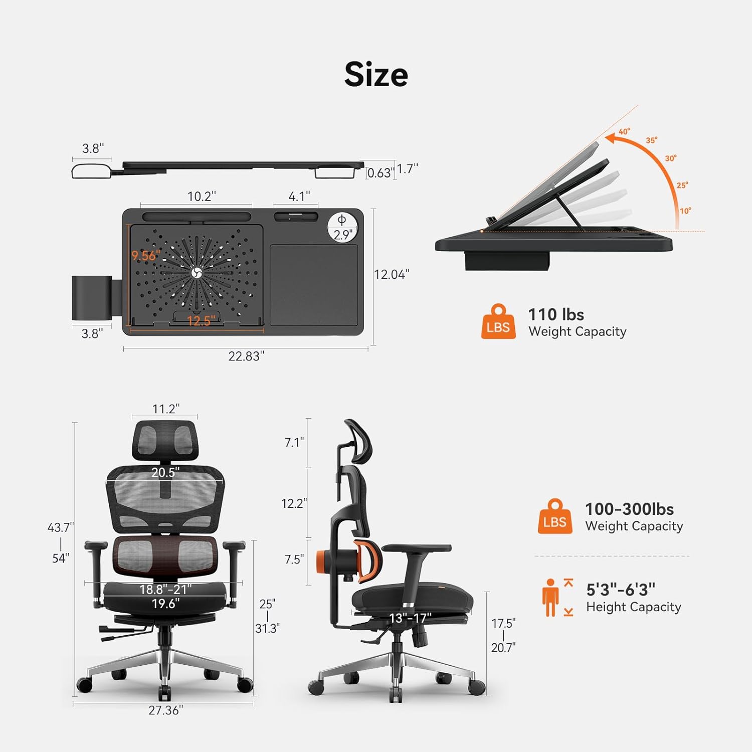 Newtral Office Chair Ergonomic - Home Office Desk Chair, Auto-Following Lumbar Support, 4D Armrest, Seat Depth and Height Adjustable for Long Time Sitting (with Footrest + Laptop Tray, Black)