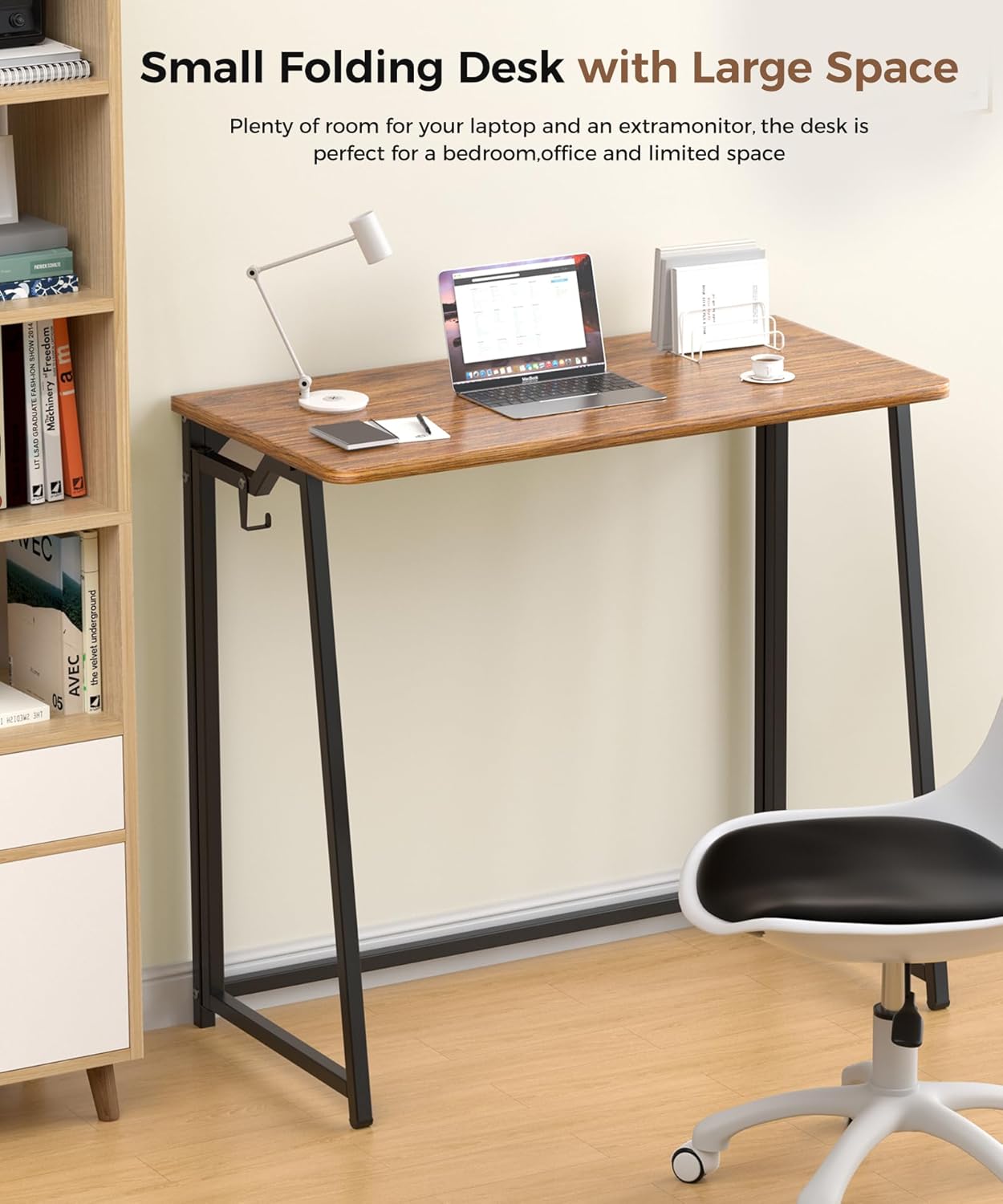 - SMALL FOLDING DESK: The product size is 15.7inches deep x 31.5 inches wide x 29.5 inches high when unfolded, which is convenient for office work when unfolded, and convenient for organization and storage when folded