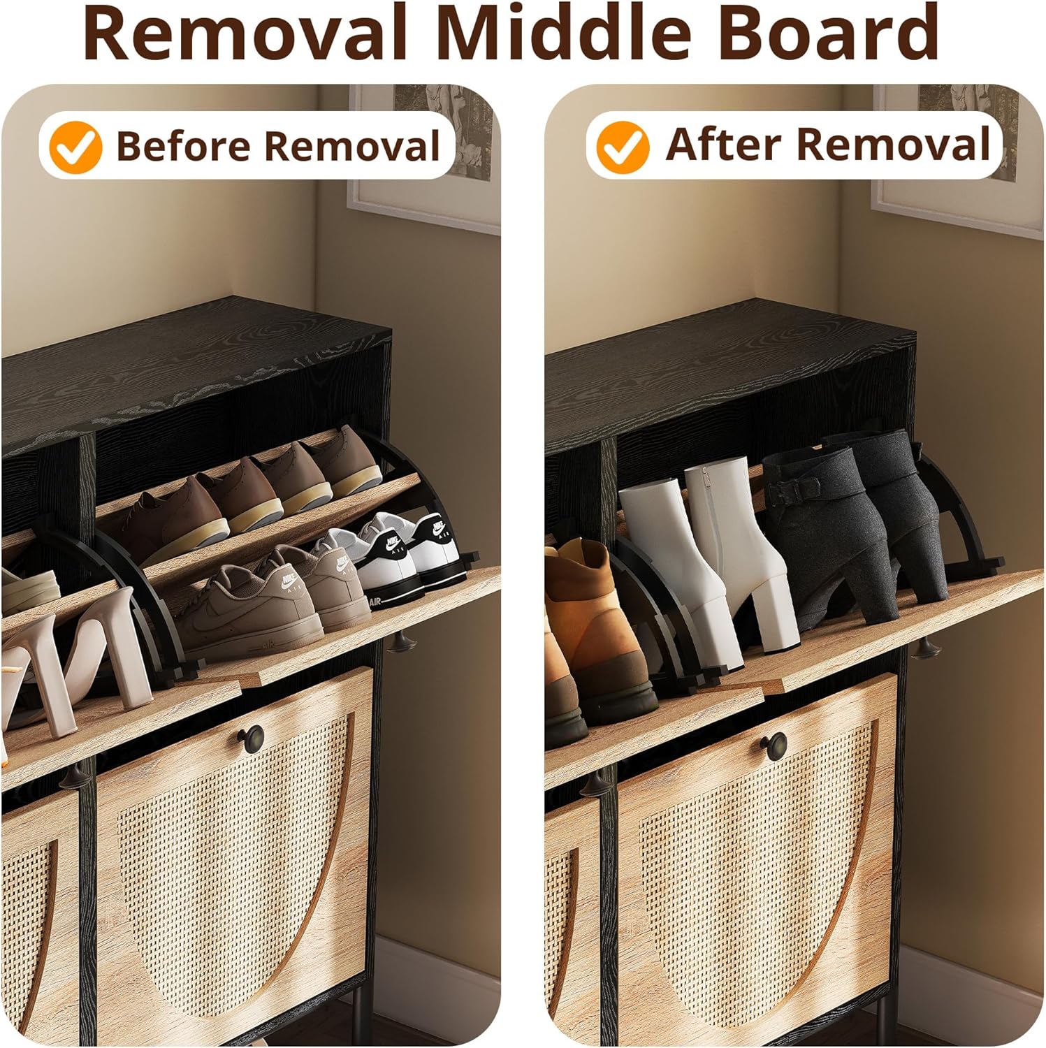 - Space Saving Flip-top Design: The freestanding shoe cabinet is designed with flip-flop drawers that are easy to open and close, keeping your shoes away from dust. In addition, without removing the dividers, the flap drawer can hold men's shoes up to 11.5 inches