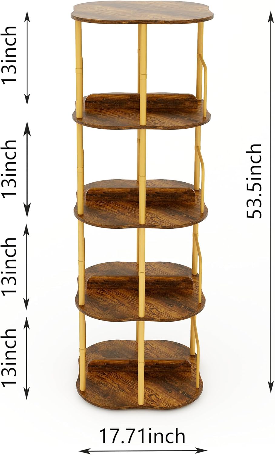 - 【SPACE SAVING and HIGH CAPACITY】: This bookshelf is designed as a slim model with a novel design style and can hold a collection of 80-100 books of different sizes. Overall dimensions: 17.71"D x 17.71" W x 53.5''H, Each layer height: 12 inch.