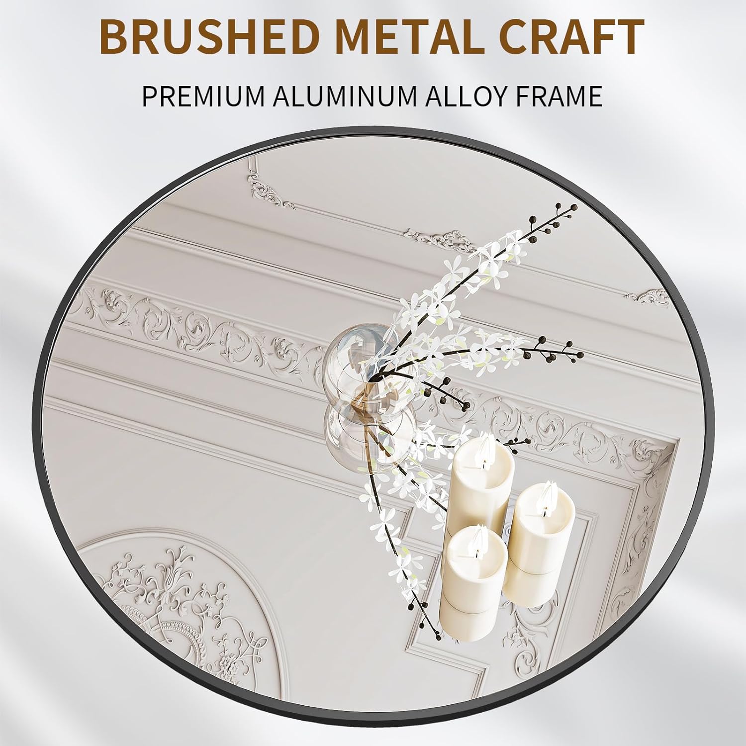- Modern Brushed Frame Design: 40-inch black circle mirror is crafted of an aluminum alloy metal sleek frame, making it ideal for bathroom mirror, entrance mirror, vanity mirror, living room mirror
