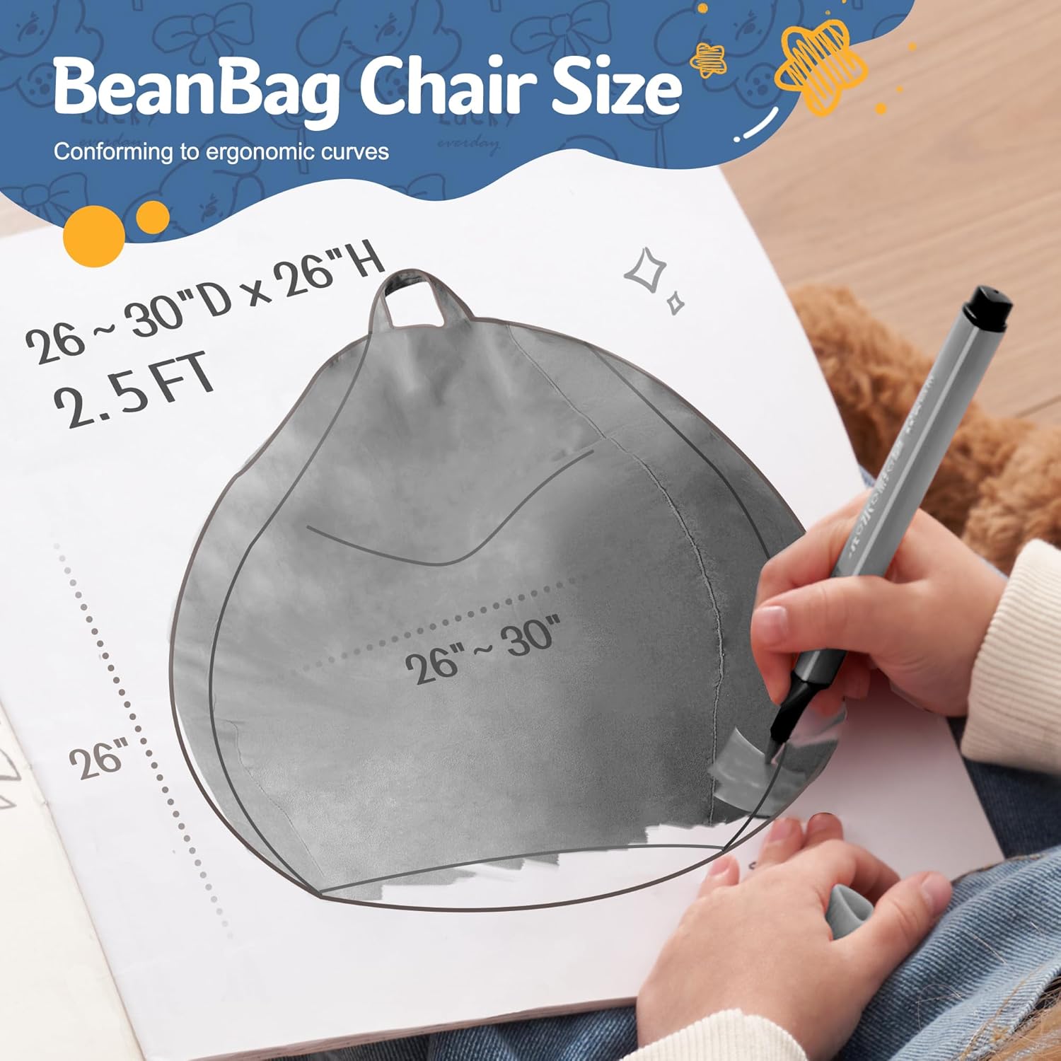 - Approximate Size: The comfy bean bag chair has small size for your little one. They can enjoy a comfortable place to sit! This bean bag chair is a great fit for a variety of living spaces with the "classic" bean bag shape everyone loves! Designed with a convenient handle makes it easy for little hands to travel to their next adventure.