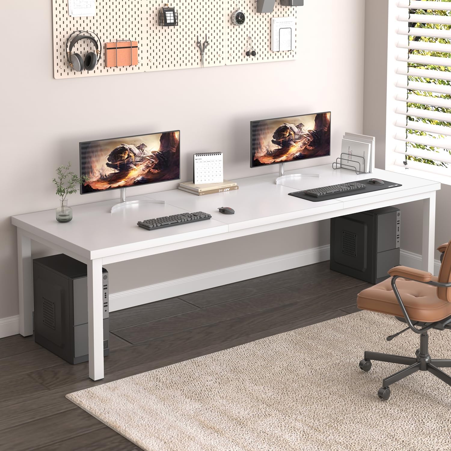 78.7 Inch Large Computer Desk, Long Gaming Table, Modern Two Person Desk Large Executive Office Desk, Double Table at Home, Perfect for Work, Gaming, Studying, and Writing, Etc., White