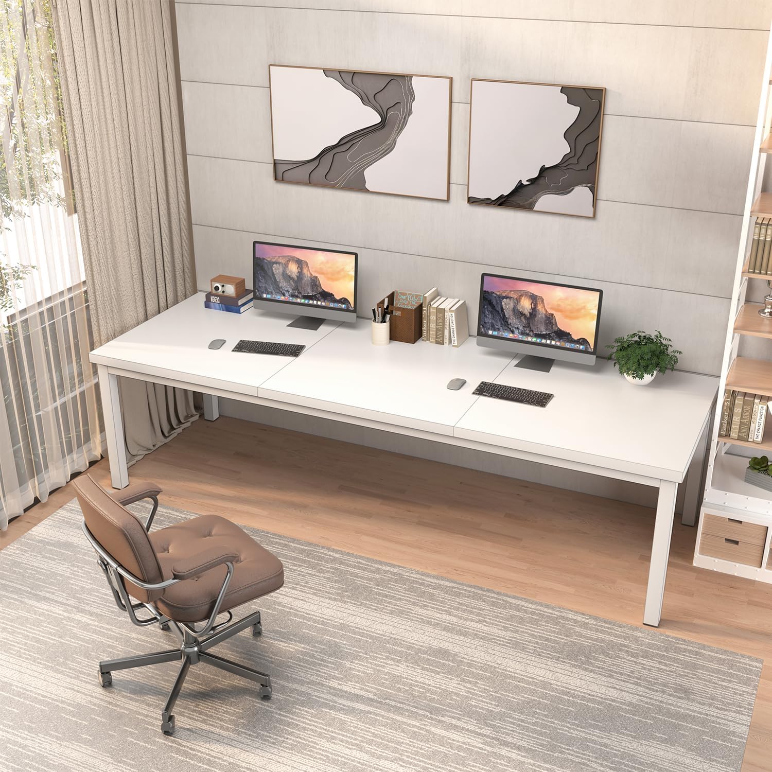 - Sleek modern aesthetic: This long desk featuring a minimalist white steel frame and matching desktop, this large desk seamlessly blends into contemporary home offices, gaming setups, or studio spaces. You can use it as a gaming computer desk, office desk and so on.