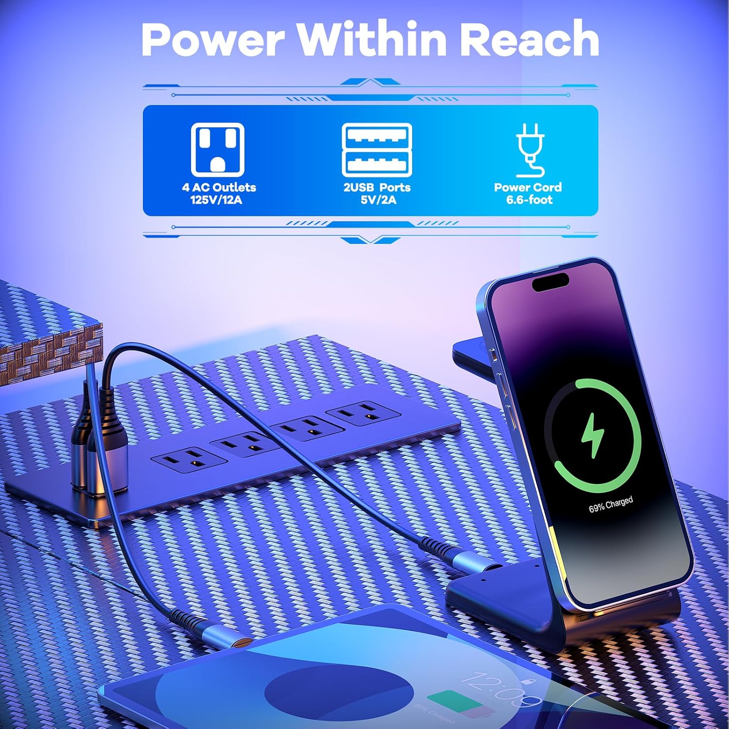 - 【Built in Charging Station 】This L-shaped gaming desk is designed specifically for the ultimate gaming experience. Built in power board, equipped with 4 AC power sockets and 2 USB charging ports, can provide power to mobile phones, tablets and other devices at any time during daily use, ensuring that all your devices can maintain sufficient power.