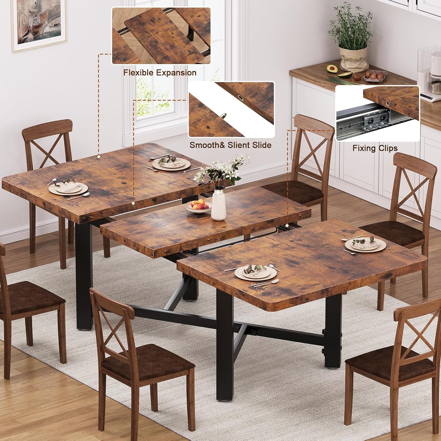 Dining Table for 4-6,62“Extendable Round Kitchen Dining Room Table, Space Saving Rectangle Large Expandable Wood Dinner Furniture for Small Space, Brwon(47-62In*28In*30In