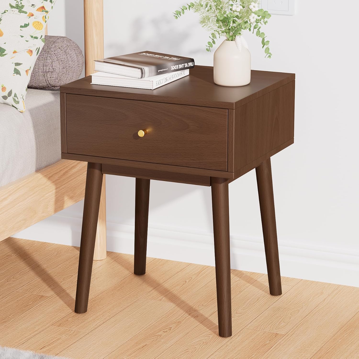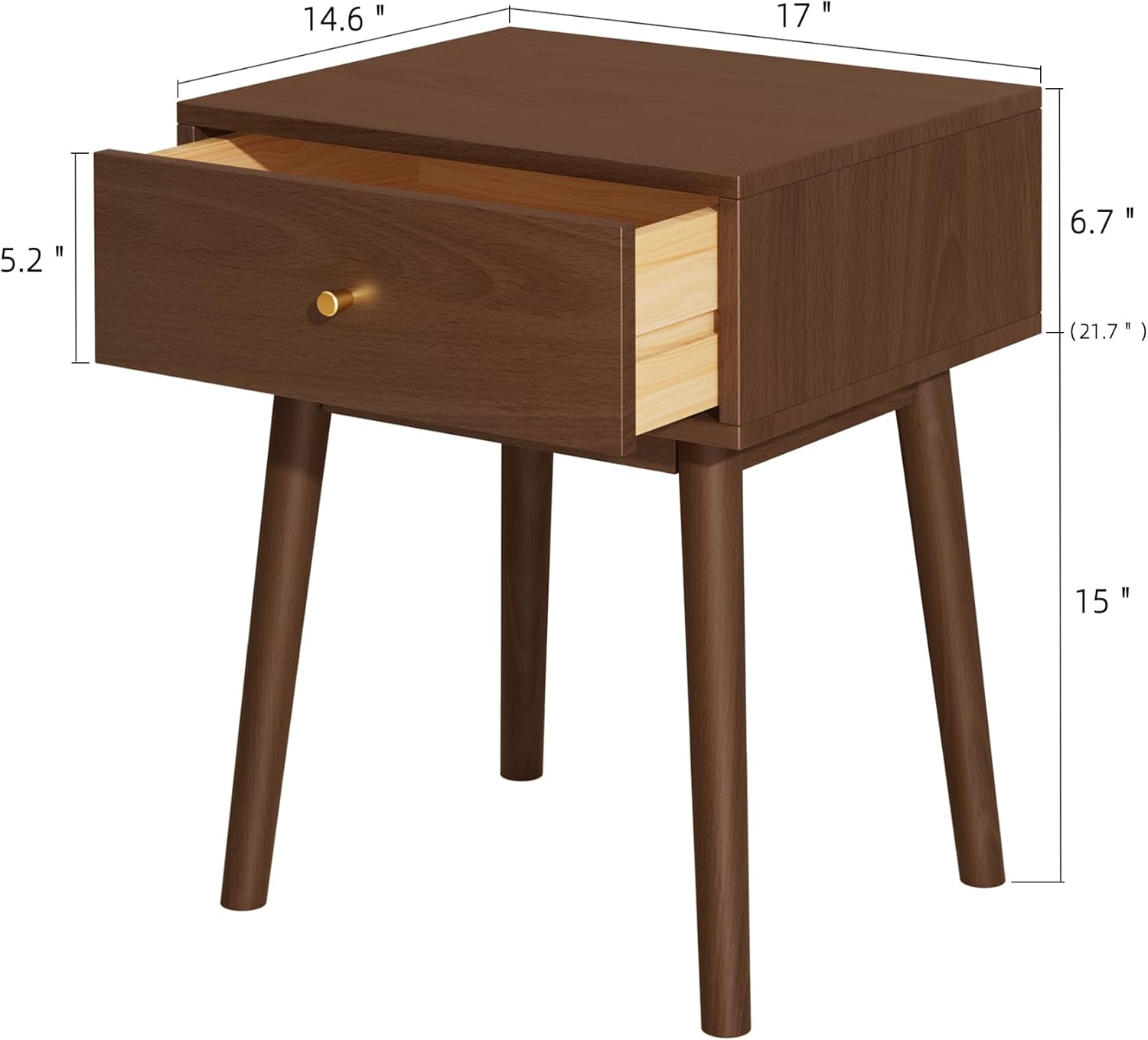 Small Solid Wood end Table with 1 Drawers, Mid-Century Modern Night Stand/nightstands,Side Table with Storage (Espresso)