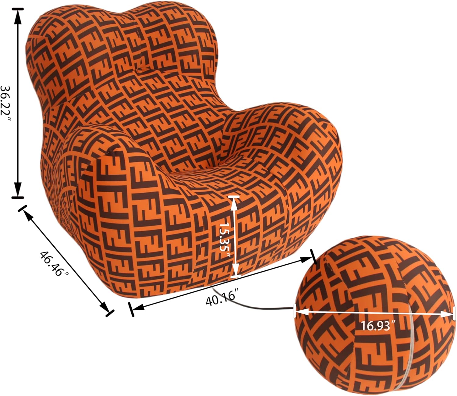 Bean Bag Chair - Memory Foam Bean Bag Chair for Adults, Comfy High-Resilience Single Sofa, Small Space Floor Chair, Chaise Lounge for Living Room, Bedroom (Orange, Ball)