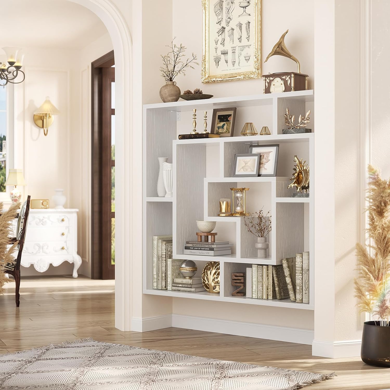 Armocity 6 Tier Display Book Shelf Wall Mounted Bookshelf Freestanding Geometric Bookcase Floating Book Shelves for Wall Bedroom Living Room Home Office, 45.5"(W) * 47"(H), White