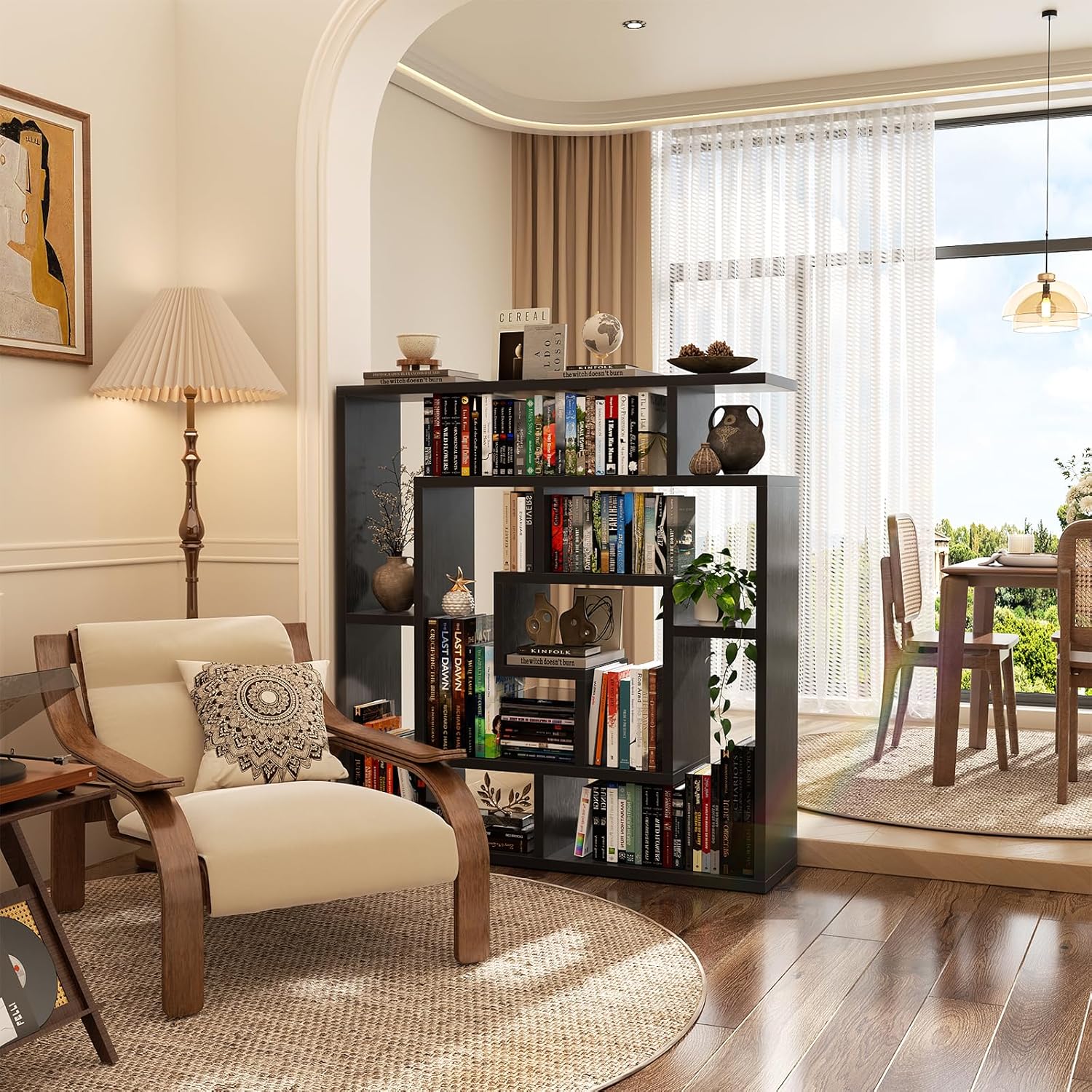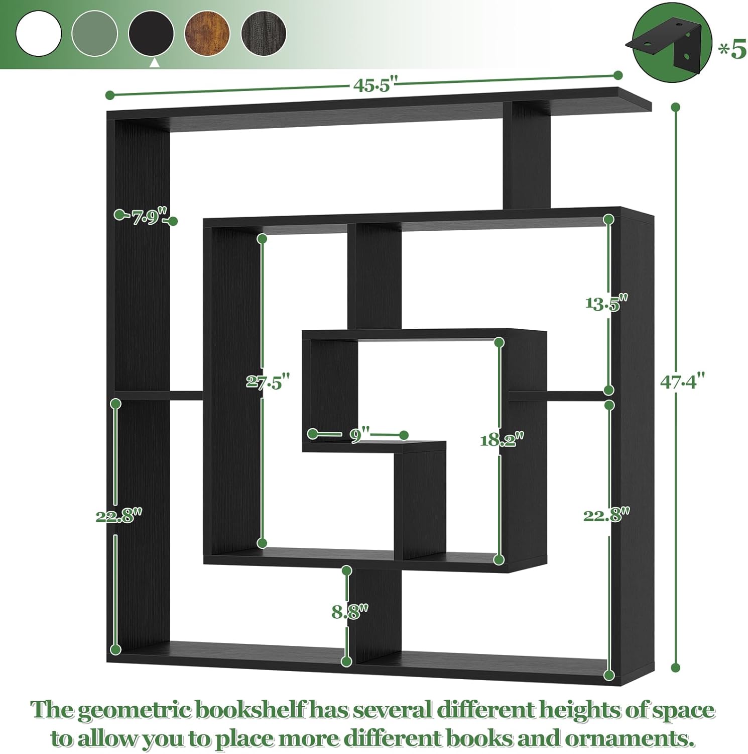 Armocity 5 Tier Display Book Shelf Wall Mounted Bookshelf Freestanding Geometric Bookcase Floating Book Shelves for Wall Bedroom Living Room Home Office, 45.5"(W) * 47"(H), Black