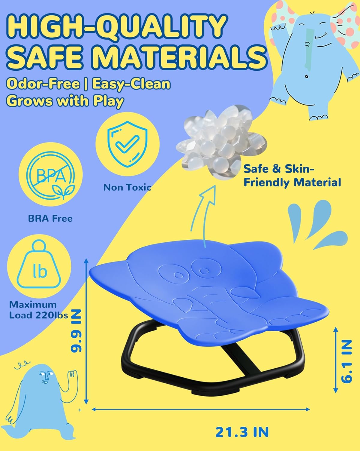 - Quality Manufacturing: Sensory Swivel chair for kids is made of premium-quality PP material, heat-resistant and corrosion-resistant, with a sturdy metal base, solid solder joints, the kids swivel chair can with stand up to 220 pounds of weight, which will give you the escort for your children's play