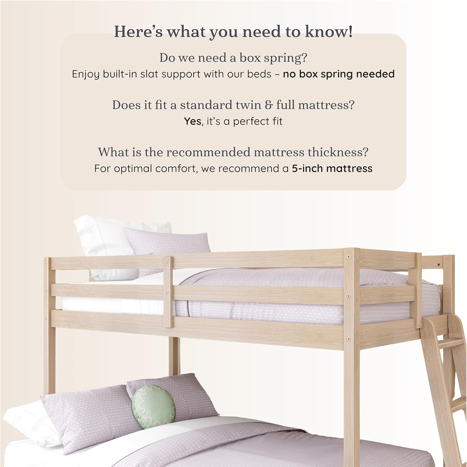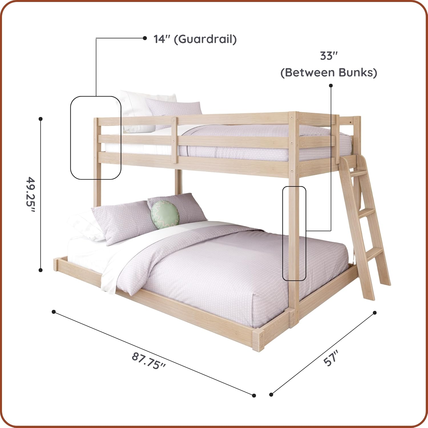 Grain & Grove Bear Twin Over Full Bunk Bed, Low Bunk Bed Frame for Kids, Bunk with Ladder, Guardrail and Slats, No Box Spring Required, Oak Embossed Natural