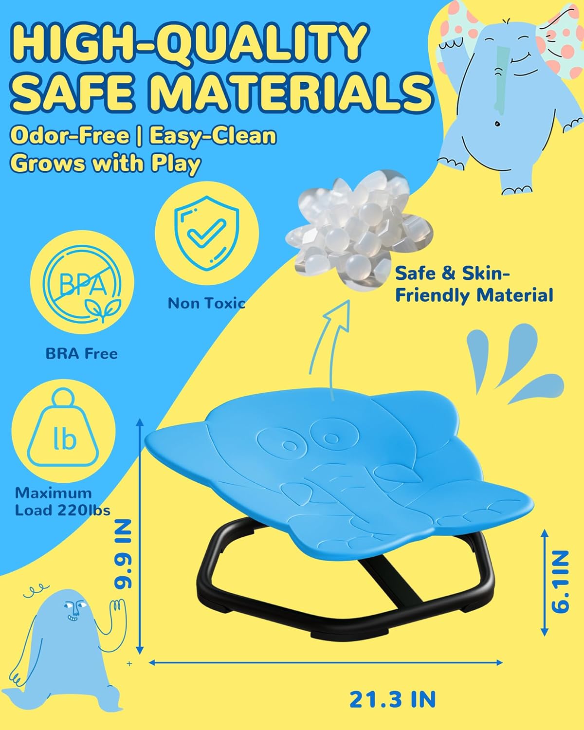 - Quality Manufacturing: Sensory Swivel chair for kids is made of premium-quality PP material, heat-resistant and corrosion-resistant, with a sturdy metal base, solid solder joints, the kids swivel chair can with stand up to 220 pounds of weight, which will give you the escort for your children's play