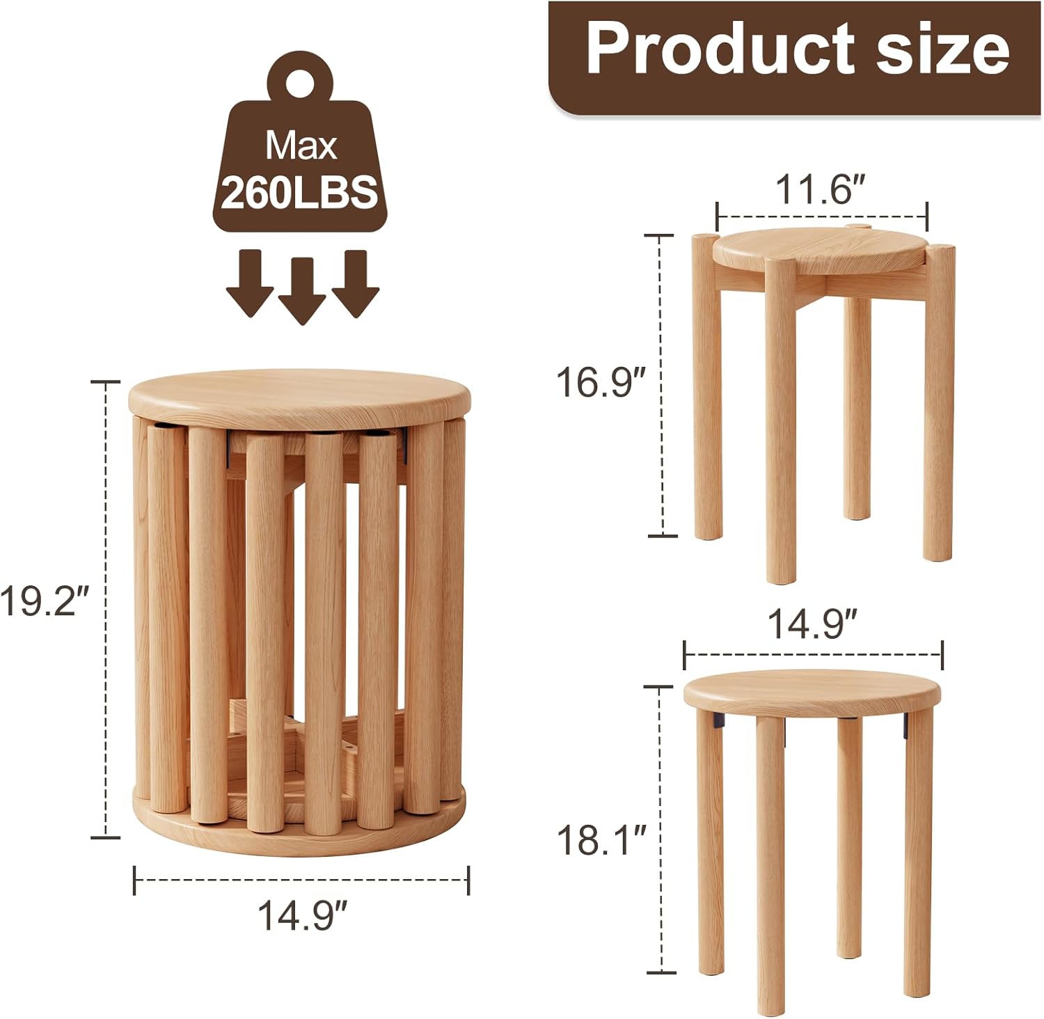 - 【Durable & Safe Construction】:Built with 100% solid rubber wood and thickened legs, these stacking stools are sturdy enough for daily use. Non-slip pads on the legs ensure stability, protect your floors, and prevent accidents, making wood stools ideal for both indoor and outdoor environments