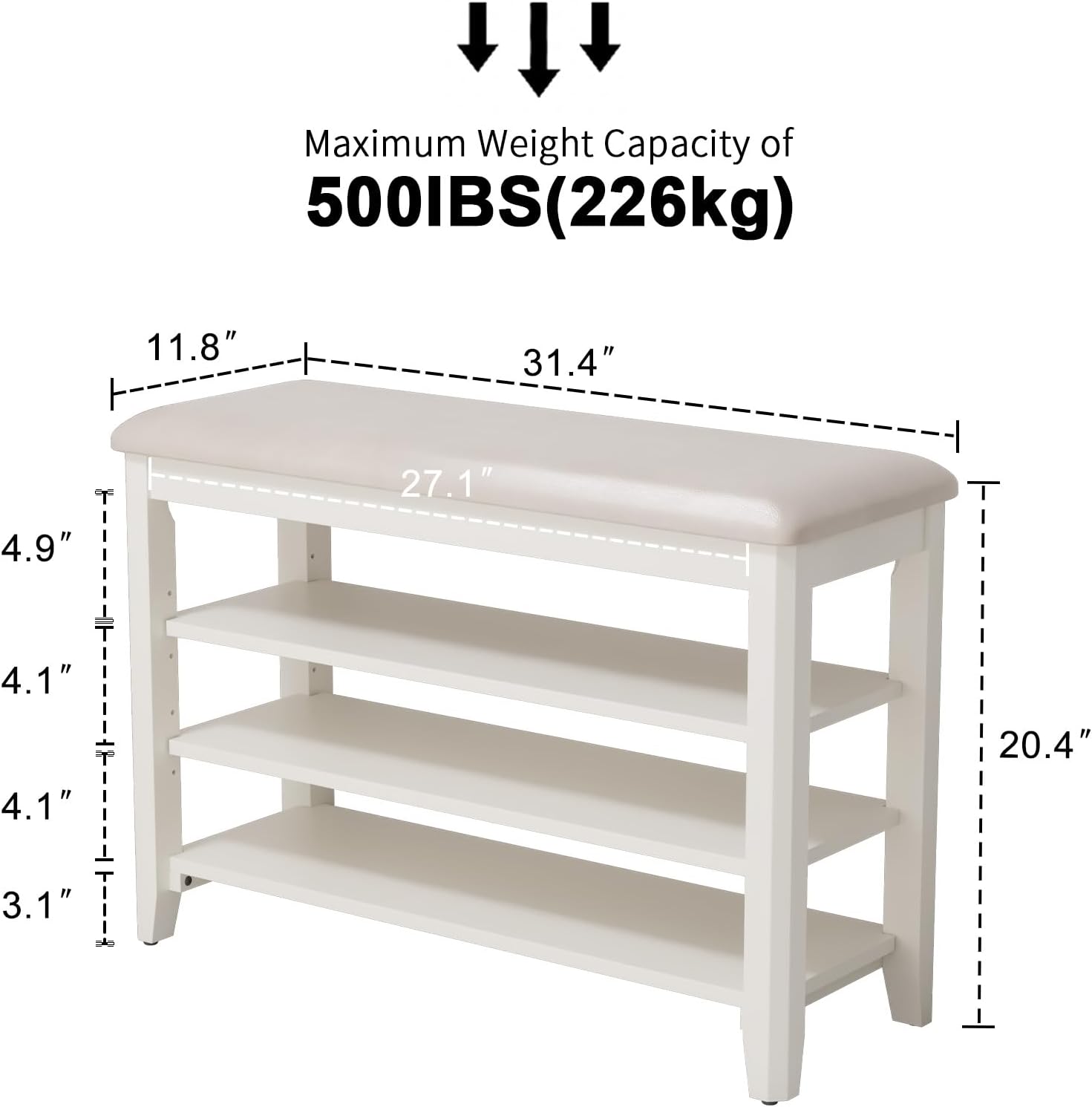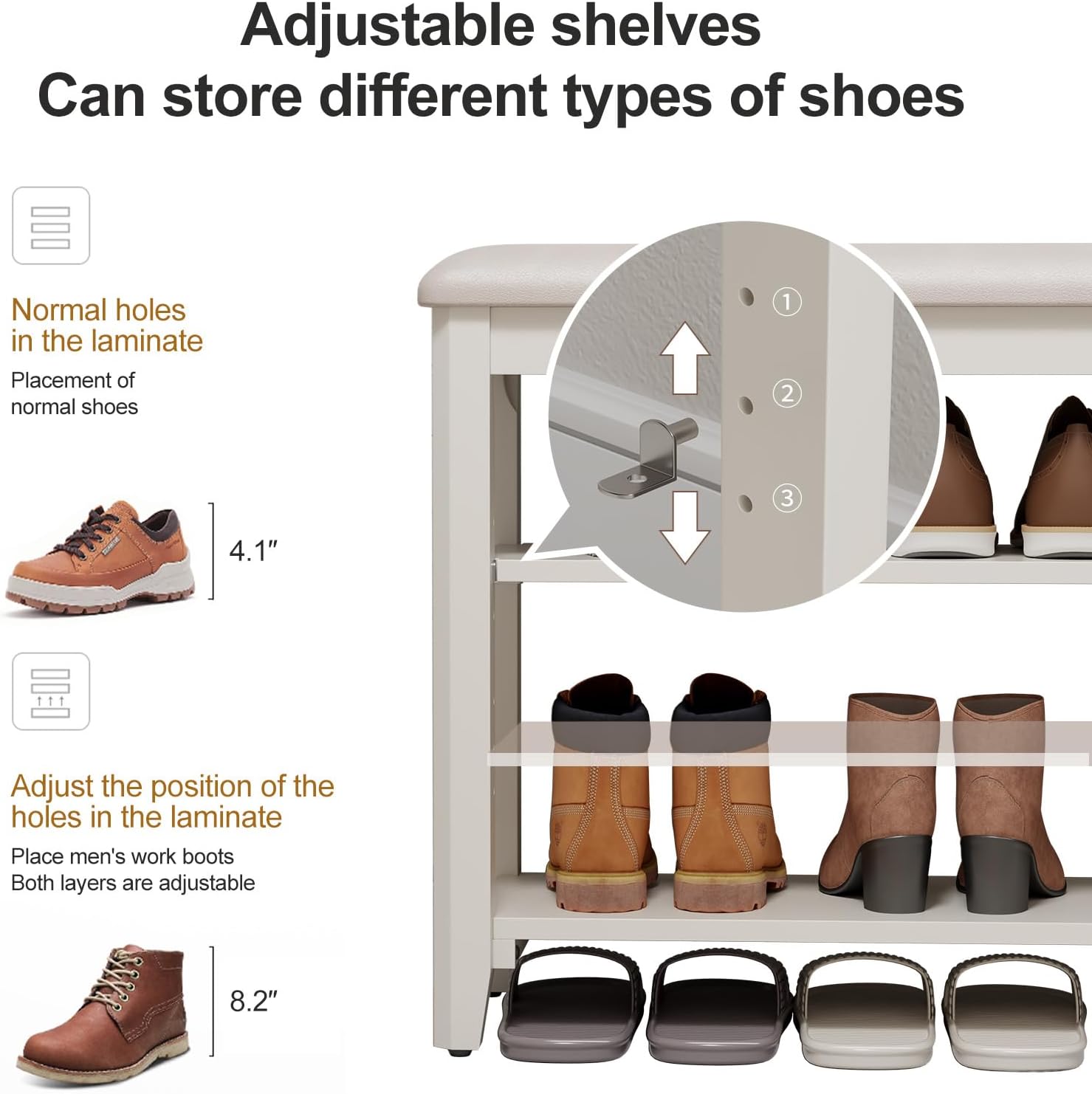 - 3-Tier Shoe Storage Design:This three-tier shoe storage bench can organize up to 9-12 pairs of shoes. The ergonomic 20.47" height allows for comfortable shoe putting on and taking off, keeping your entryway tidy.