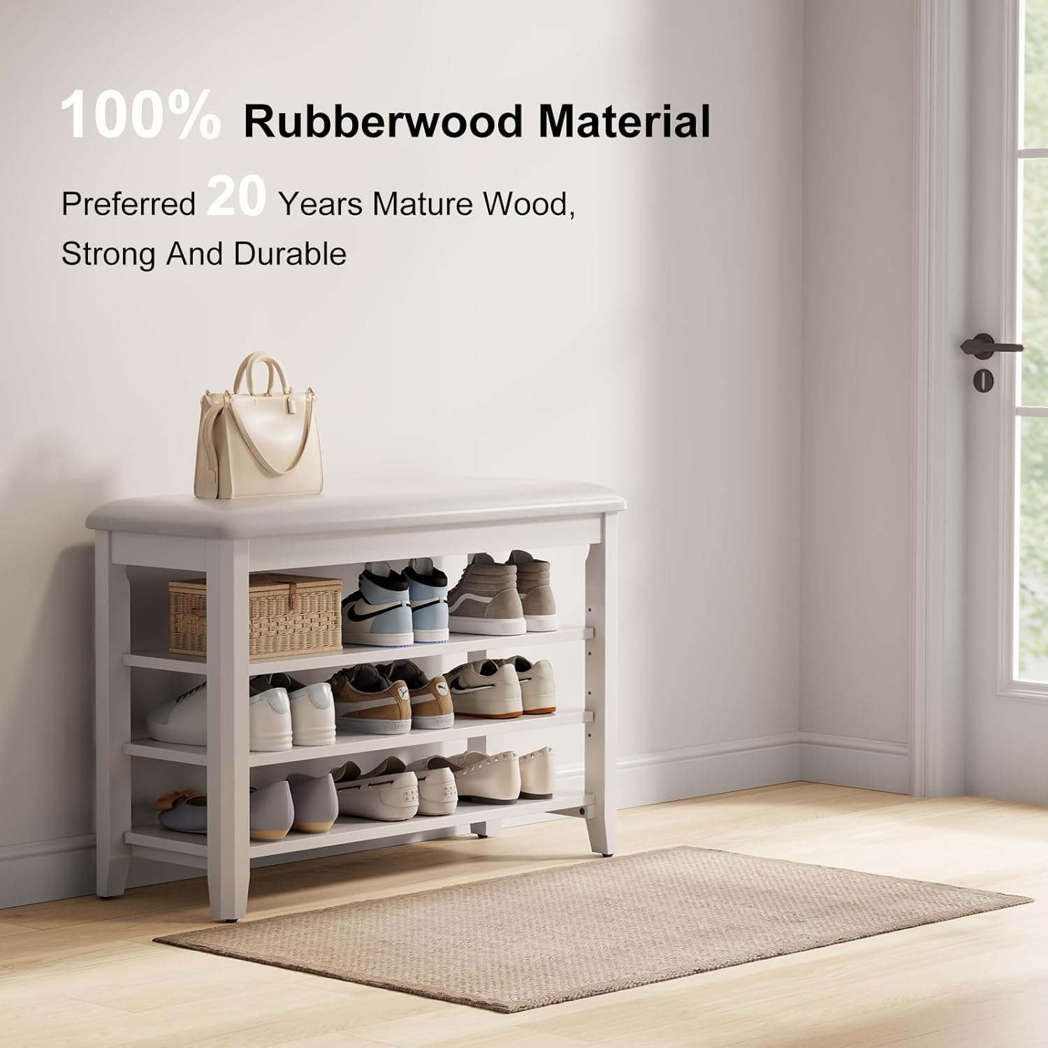 - Durable Rubberwood Construction:Made from 100% sturdy rubberwood, this entryway bench can support up to 500 lbs, making it ideal for entrances, hallways, and mudrooms. Its robust frame ensures long-lasting stability.