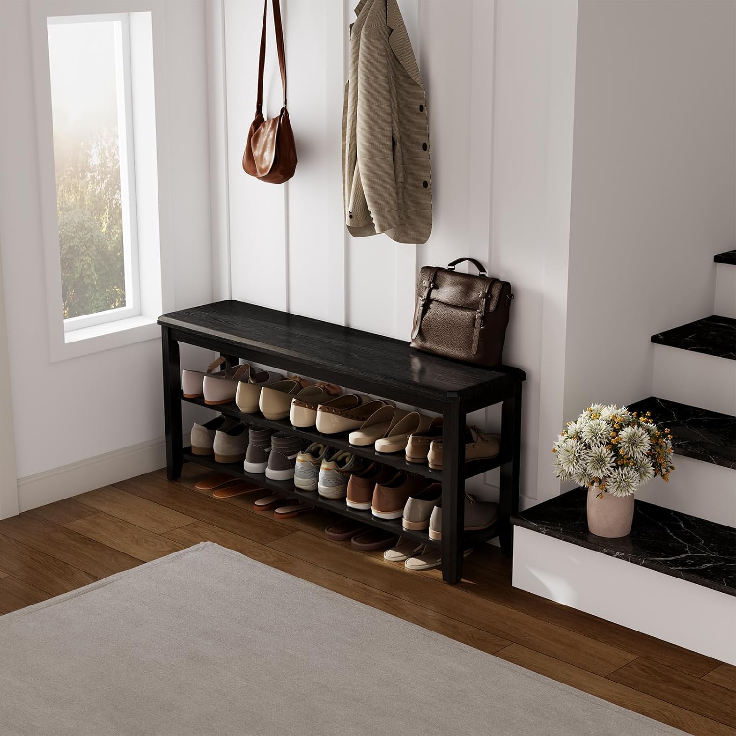 Wood Shoe Rack Bench for Entryway, 2 Tier Shoe Rack for Front Door Entrance, Shoe Bench with Shoe Storage for Entryway, Bedroom, 47.2"