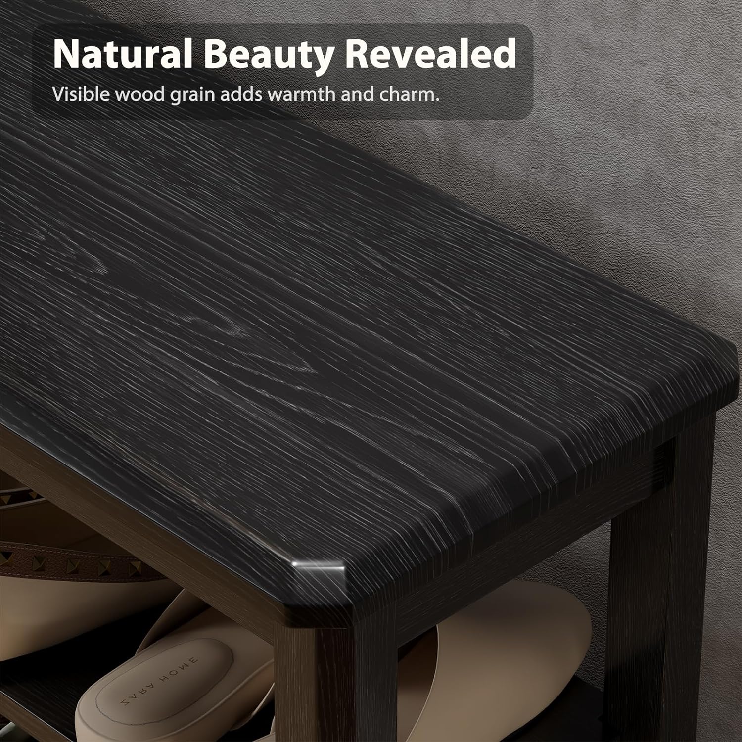 - 【Sturdy & Durable】Made from 100% 3A-grade rubberwood, this shoe bench entryway is solid and long-lasting, supporting up to 550 lbs. The natural wood-grain seat is strong and reliable, perfect for everyday shoe changes or a quick rest.