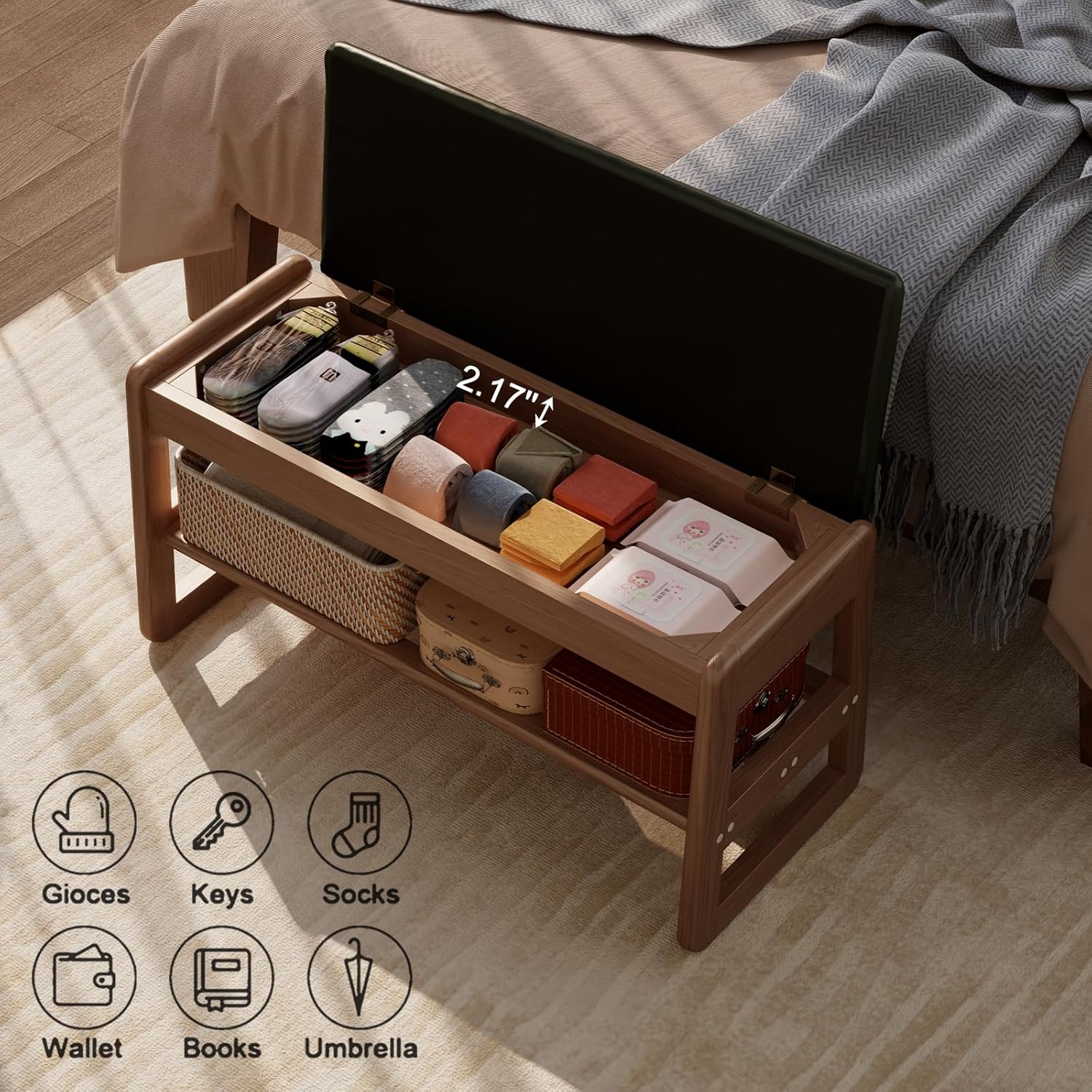 Shoe Rack Bench with Leather Cushion,2 Tiers Shoe Bench with Flip-Top Storage,Wood Shoe Rackh for Entryway,Hallway(Green,31.5")