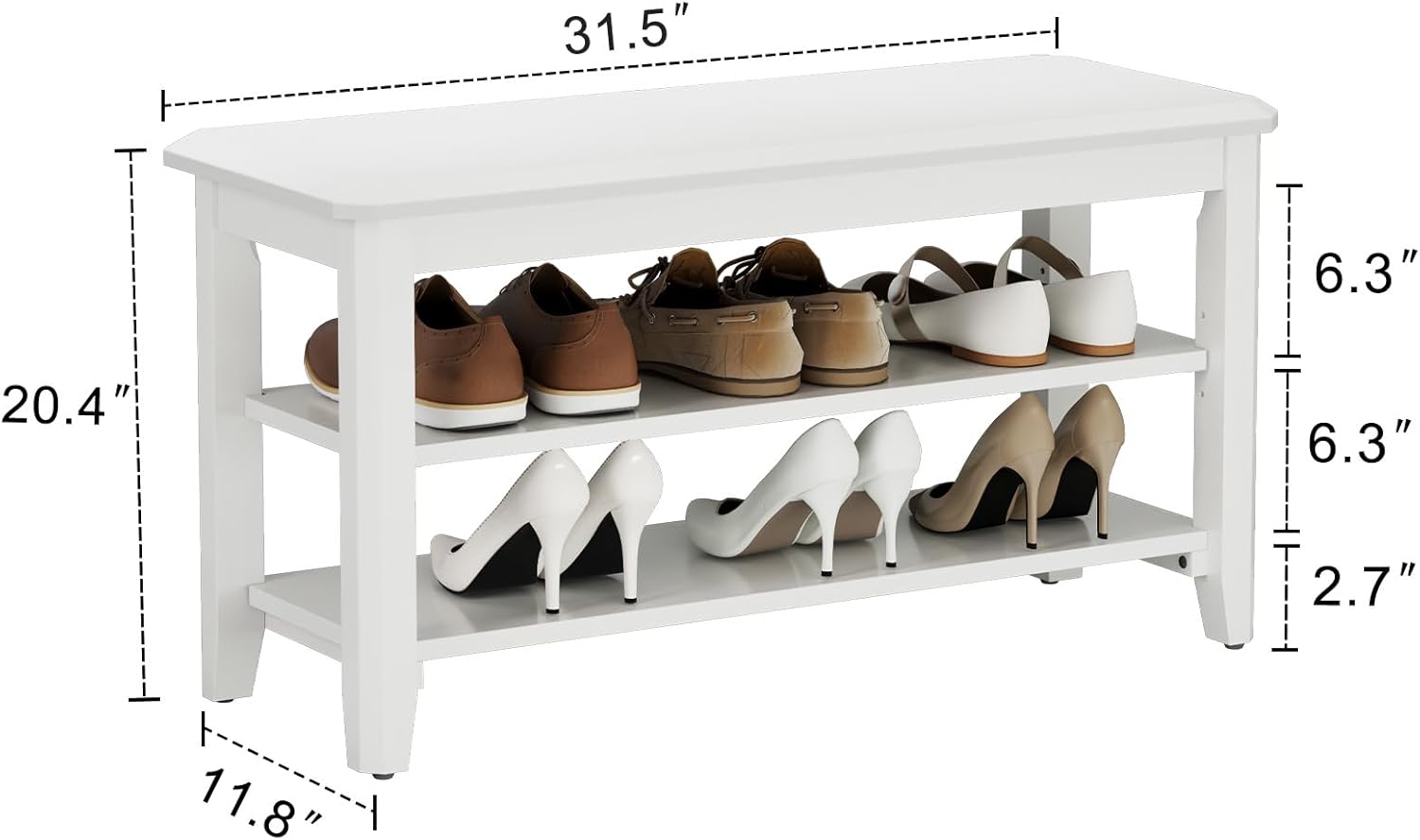 Wood Shoe Rack Bench for Entryway, 2 Tier Shoe Rack for Front Door Entrance, Shoe Bench with Shoe Storage for Entryway, Bedroom, 31.5"