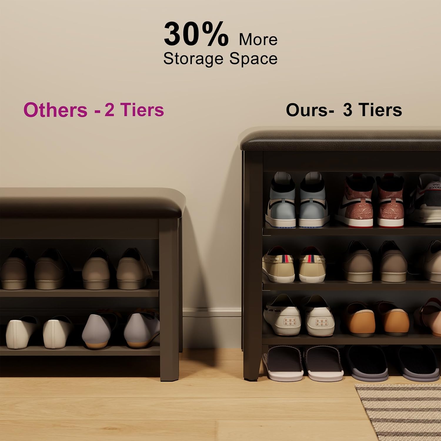 - 3-Tier Shoe Storage Design:This three-tier shoe storage bench can organize up to 15-18 pairs of shoes. The ergonomic 20.47" height allows for comfortable shoe putting on and taking off, keeping your entryway tidy.