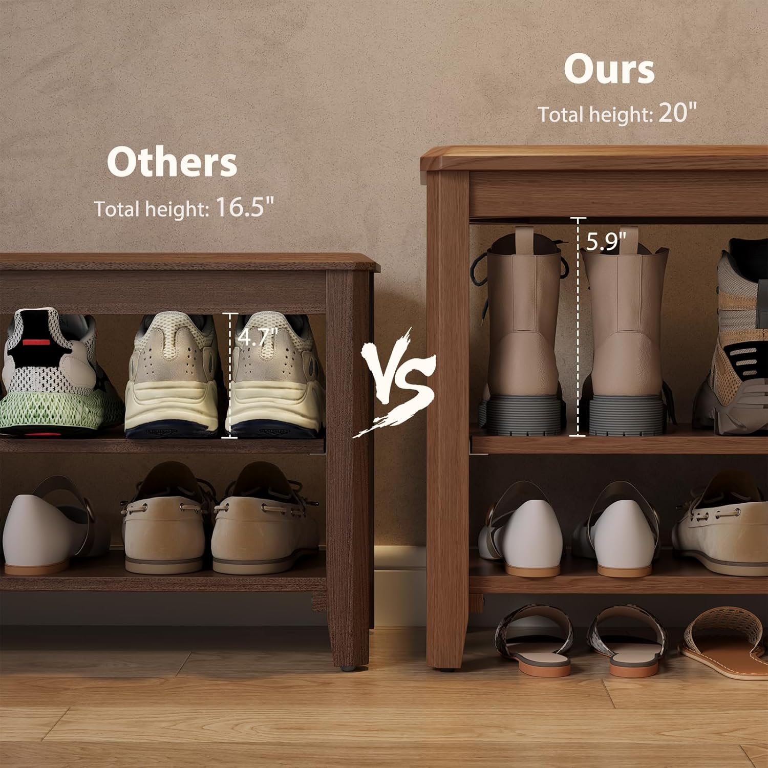 Wood Shoe Rack Bench for Entryway, 2 Tier Shoe Rack for Front Door Entrance, Shoe Bench with Shoe Storage for Entryway, Bedroom, 39.4"