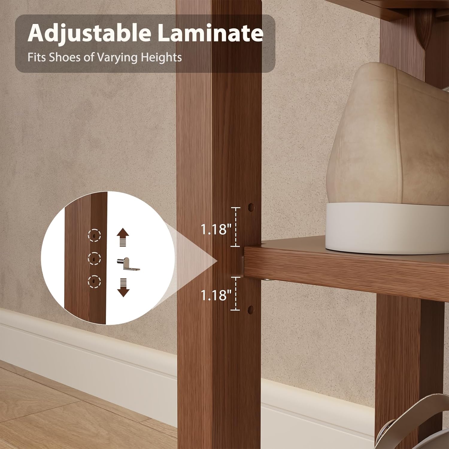 - 【Adjustable Shelves】This shoe rack for entryway comes with removable shelves for flexible storage. Whether it’s high-top boots, sneakers, or casual shoes, each pair has its perfect spot, helping the whole family keep the entryway tidy and organized.