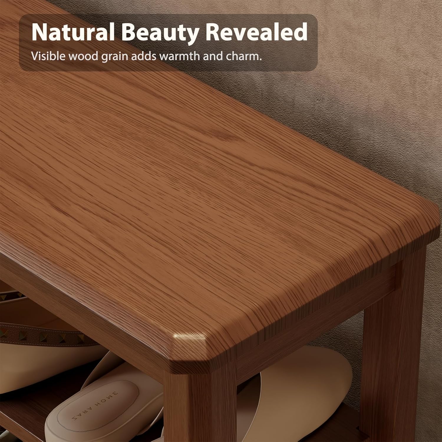 - 【Mid-Century Modern Style】With a solid wood frame and natural wood-grain seat, this shoe bench showcases timeless mid-century modern style. It blends seamlessly in entryways, bedrooms, or living rooms, adding warmth and sophistication to any space.