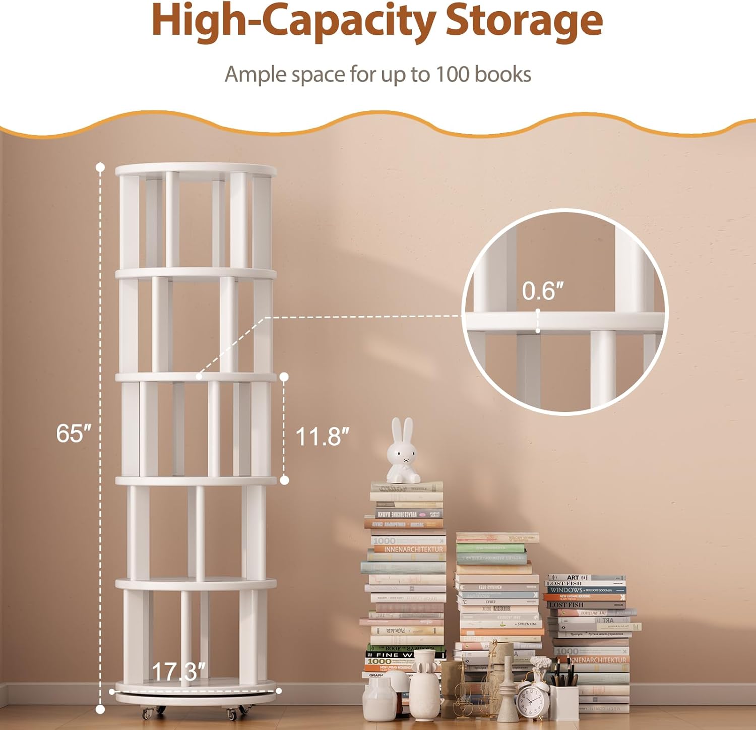 - 【SPACE-SAVING & LARGE CAPACITY】This circular bookcase rotating maximizes small spaces, holding up to 100 medium-sized books (20 per tier). Perfect for bedrooms, living rooms, offices, or playrooms