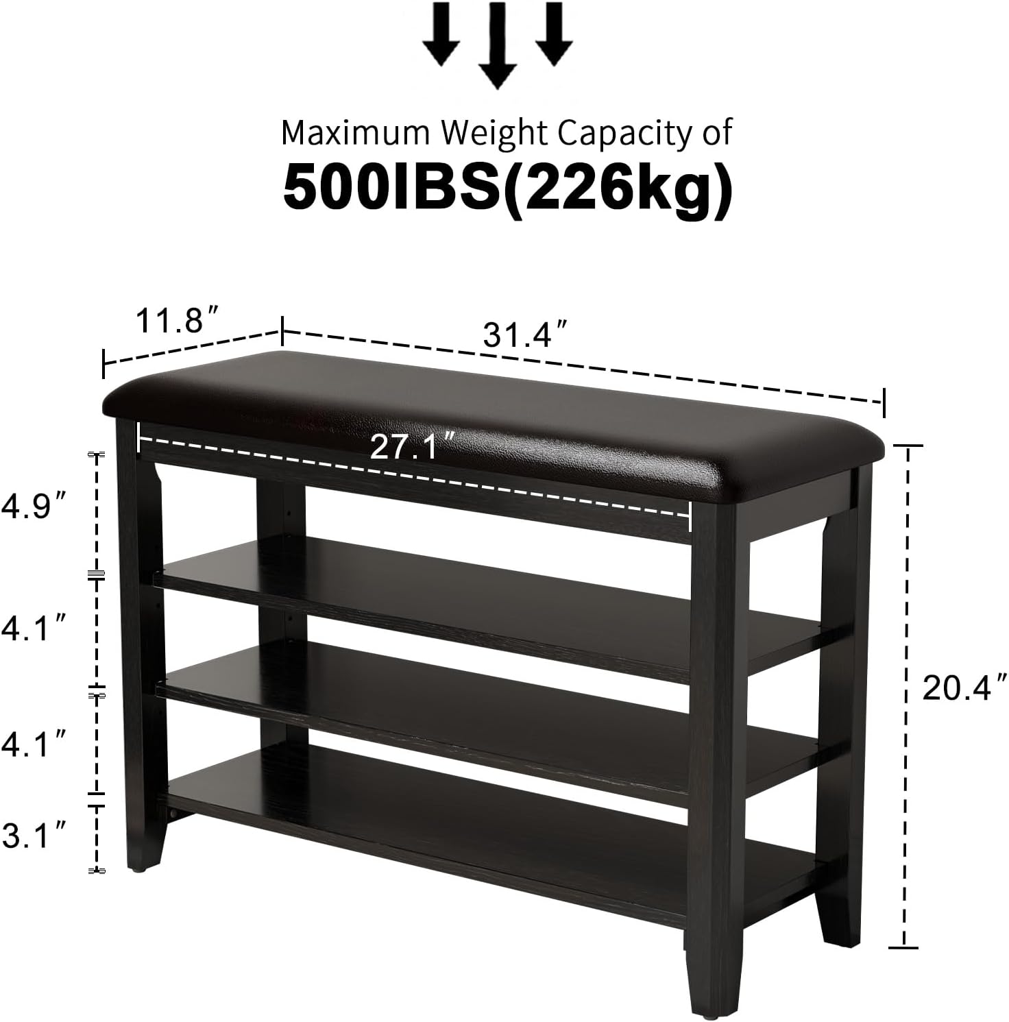 - 3-Tier Shoe Storage Design:This three-tier shoe storage bench can organize up to 9-12 pairs of shoes. The ergonomic 20.47" height allows for comfortable shoe putting on and taking off, keeping your entryway tidy.