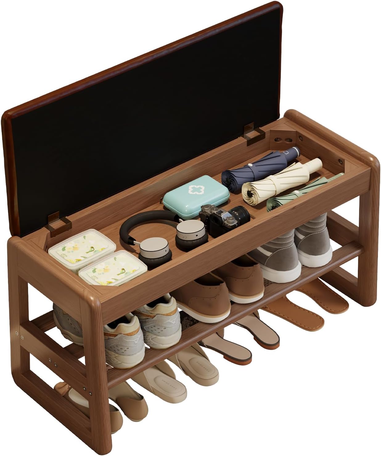 - 【Flip-up storage】 The shoe storage bench features a spacious hidden compartment, perfect for storing umbrellas, keys,socks and accessories, it keeps your entryway neat