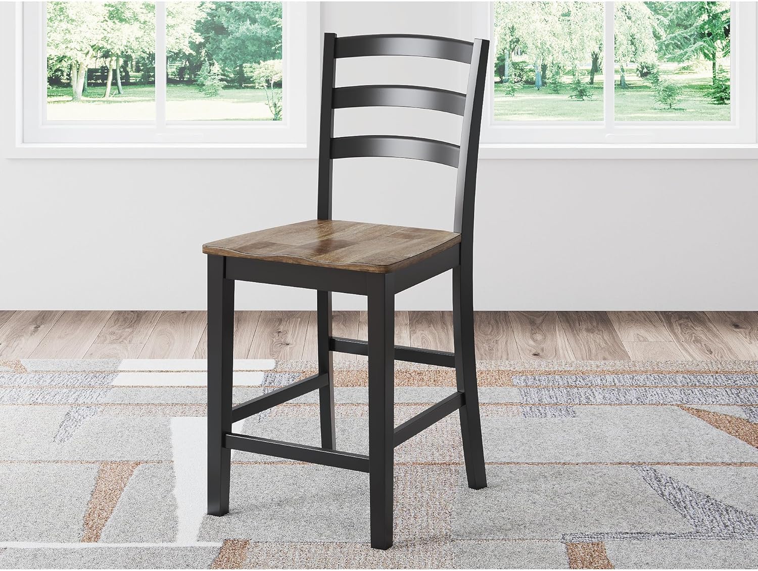 Signature Design by Ashley Wildenauer Farmhouse Armless Ladder Back Counter Height Bar Stool with Footrest, Set of 2, Light Brown & Black