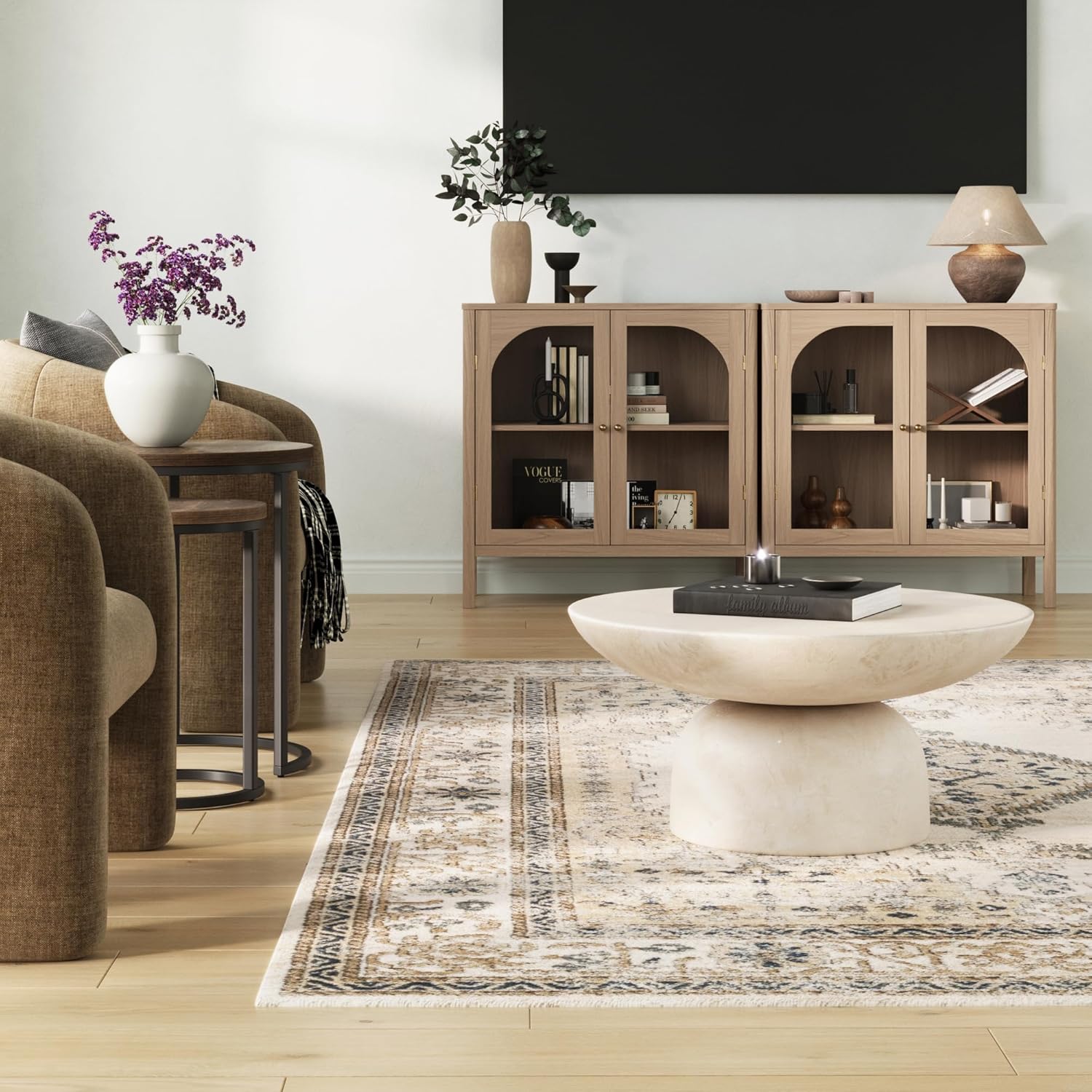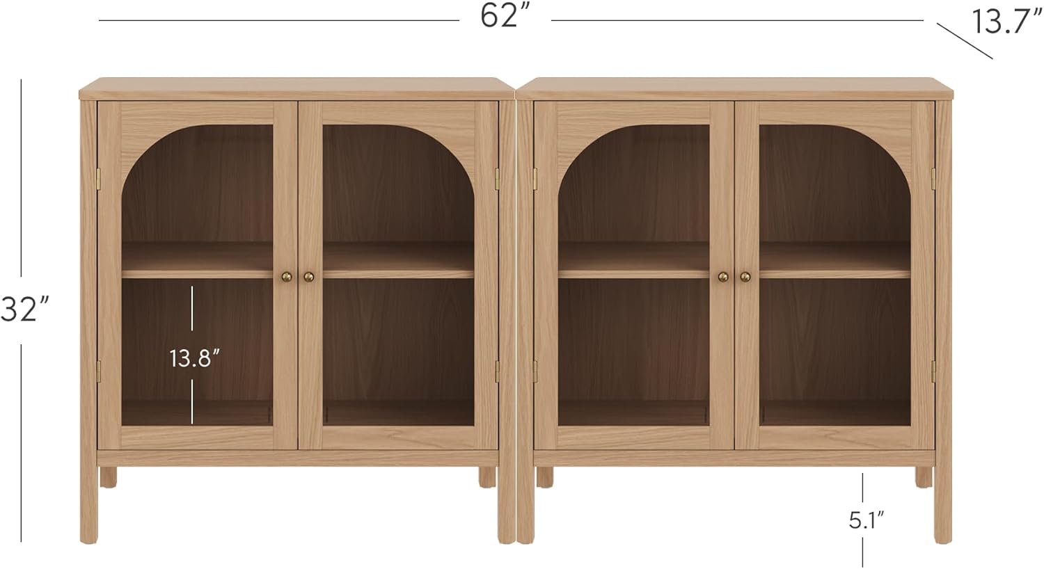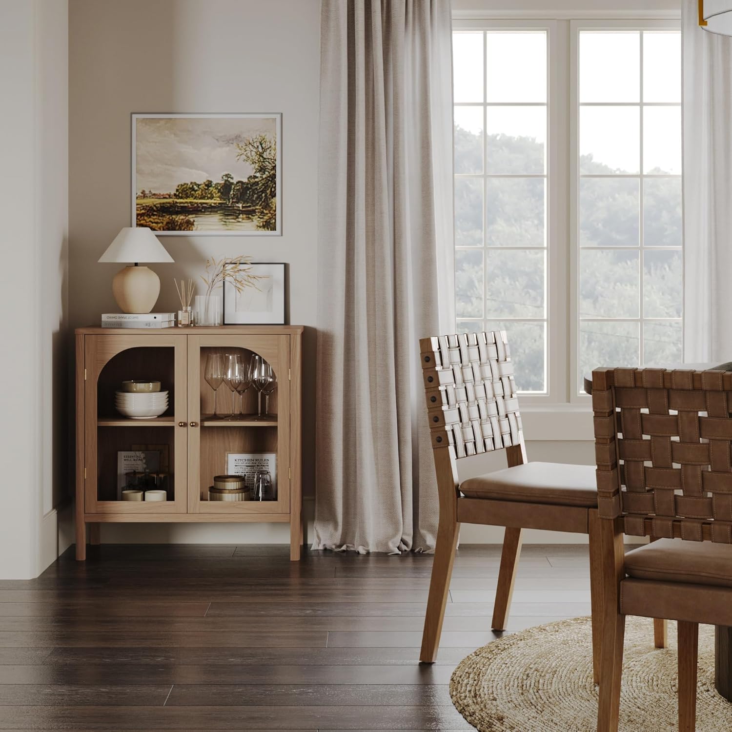 Nathan James Mason Modern Farmhouse TV Stand, Free Standing Accent Sideboard Buffet, Cabinet with Glass Doors and Adjustable Shelf, Clear Glass/Raw Oak Set of 2