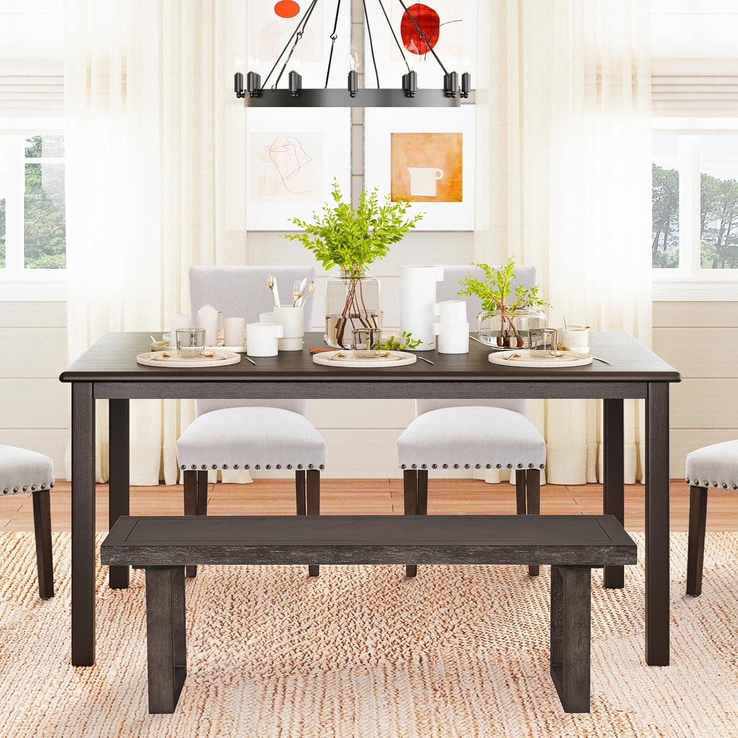 - 【Wooden Kitchen Table Set for 4】Showcasing clean lines, a sleek profile, and a minimalistic charm, our rectangle dining table offers a modern twist to the classic dining experience. It's not just a table; it's a statement piece that elevates the look and feel of your dining space.