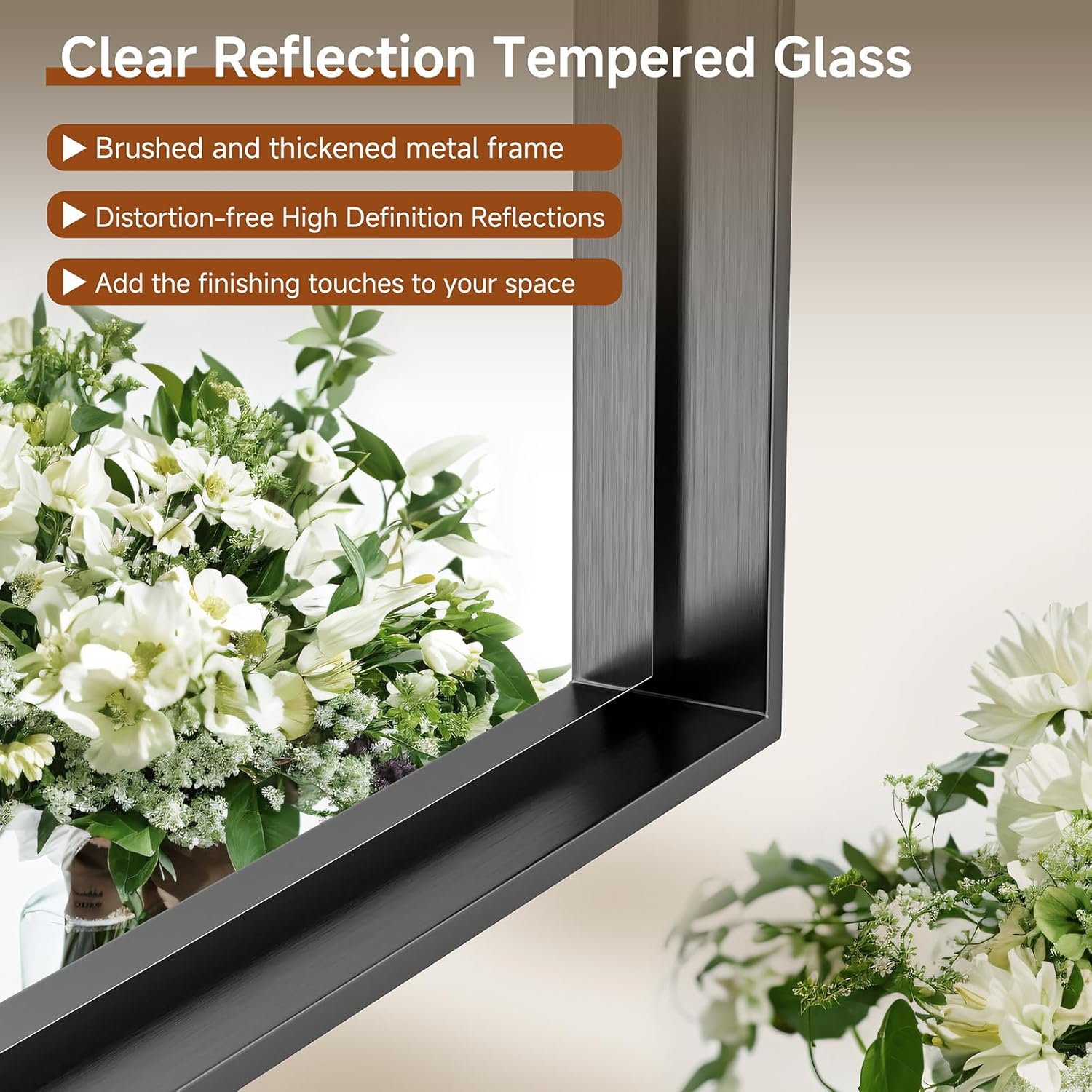 - 【STRONG & DURABLE】Superior Quality With exclusive shipping technology, each square right angle mirror outer package comes with four protective corners,Black framed bathroom mirror damaged on arrival or other problems, no need to worry, we are always there for you with a satisfied solution. Please don't hesitate to get in touch if there's anything we can help with you.