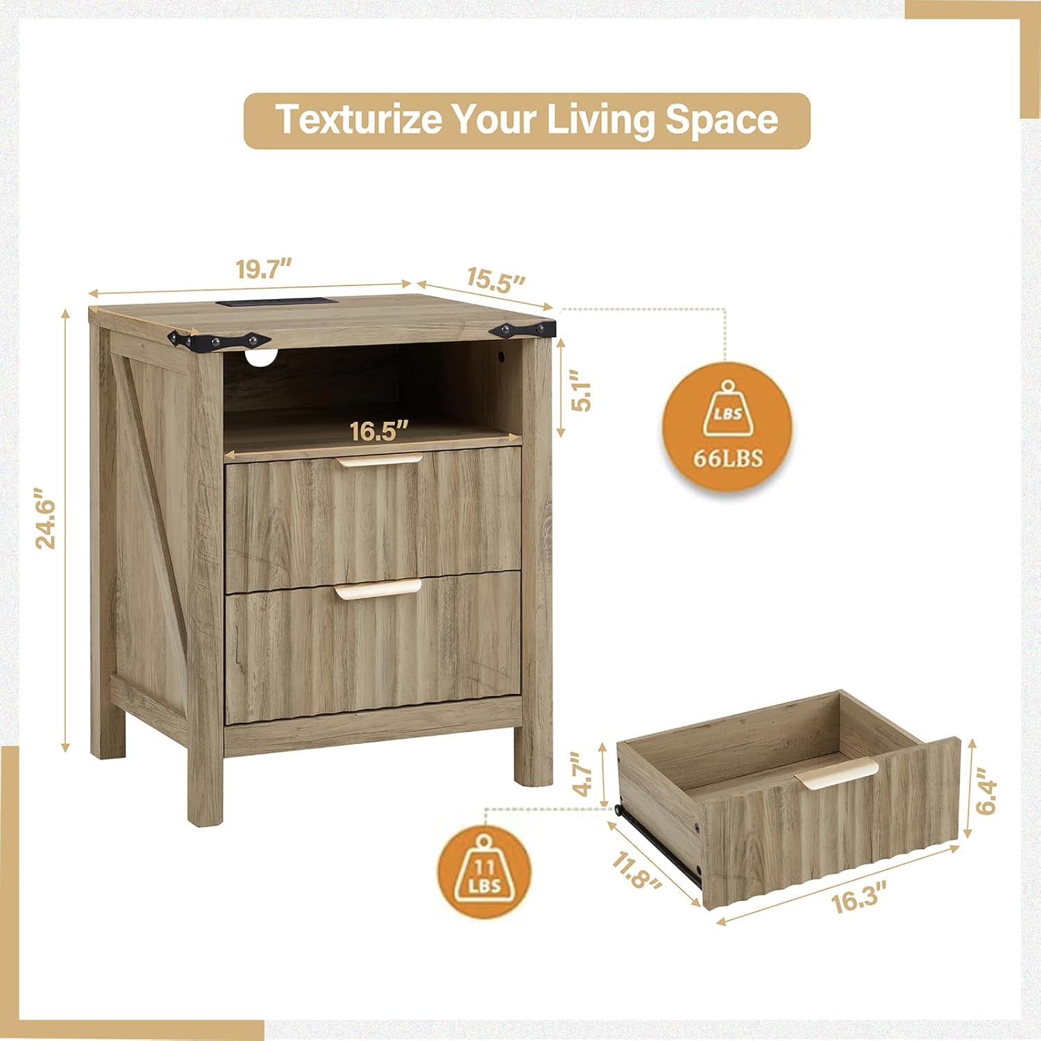 - Farmhouse Charm Meets Urban Living: Curated for modern homes with classic fluted detailing and brushed gold handle. Sunwashed Ash Oak finish blends with coastal decor, rustic cabins, or city apartments. Compact 20" height fits snugly beside king beds, sectionals, or office chairs