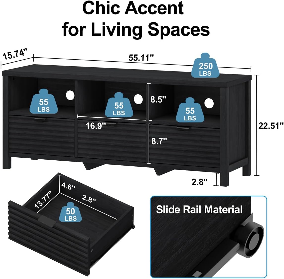 - Ample 3-Drawer Storage: This TV entertainment center features three roomy drawers, perfect for storing DVDs, gaming accessories, and other essentials. Its TV media console with storage design ensures that your living room stays neat and organized while keeping everything easily accessible.