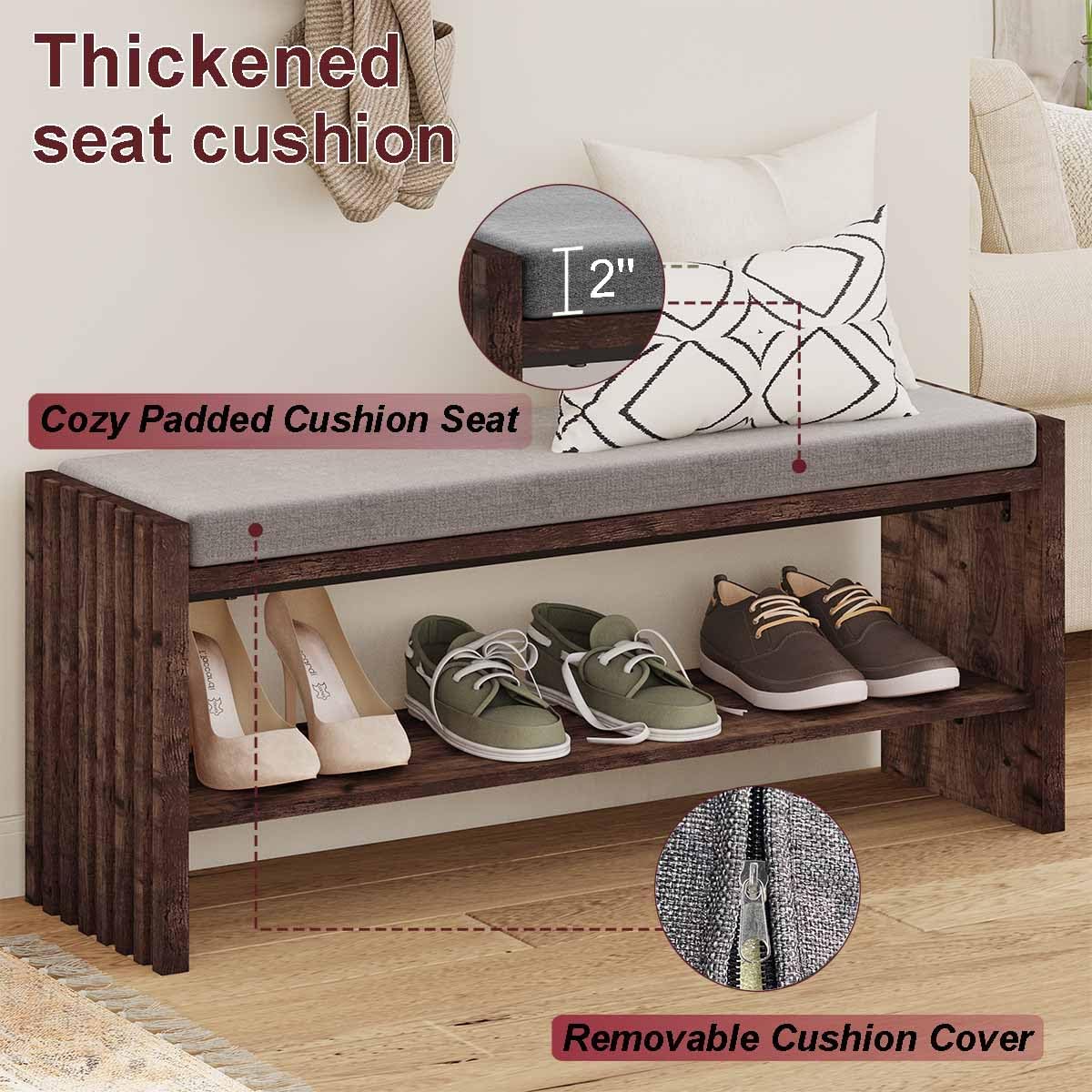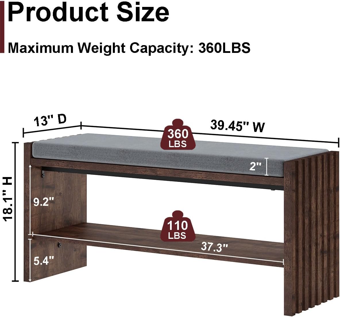 BON AUGURE Entryway Bench with Shoe Storage, 2-Tier Shoe Rack Bench with Cushion, Wood Benches for Bedroom, Living Room, Mudroom, Hall (Rustic Oak, 40 in Wide)