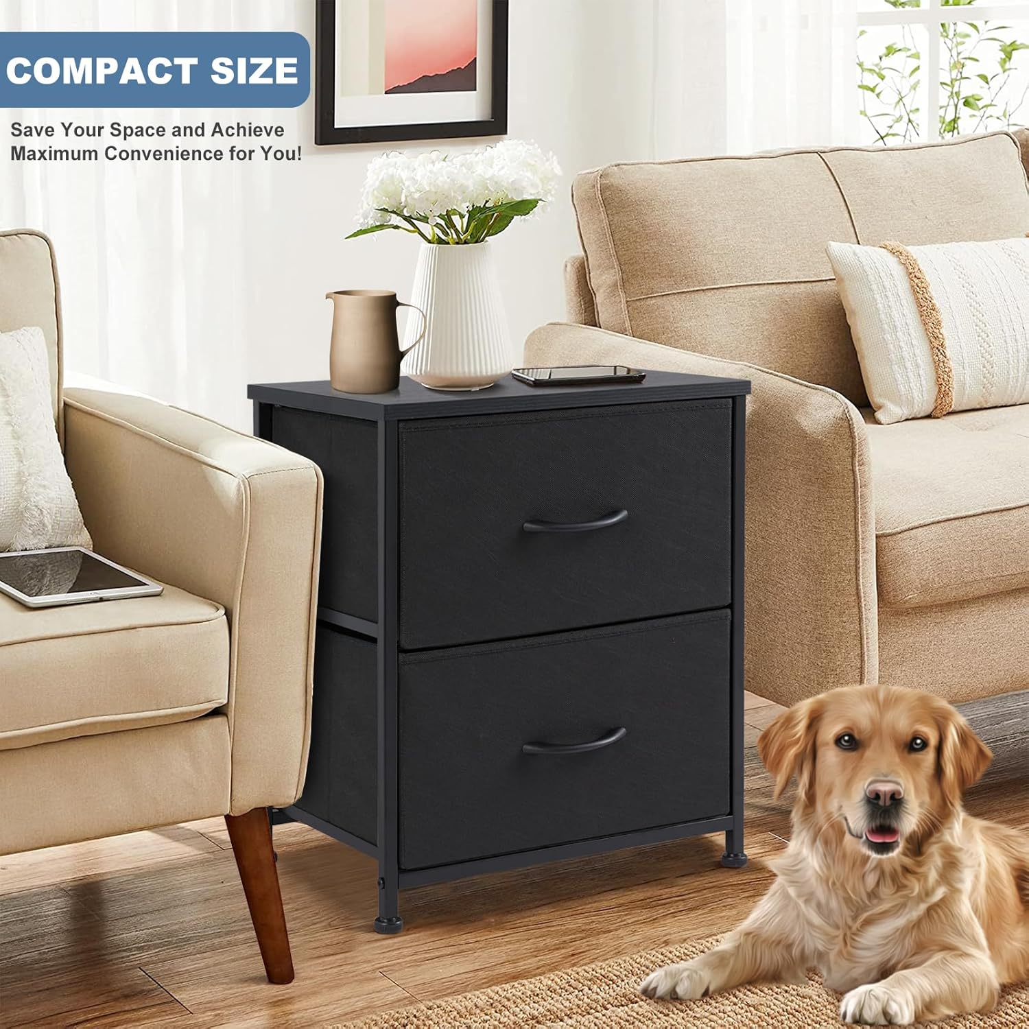DUMOS Nightstand Small Dresser with 2 Fabric Drawers Side Tables Bedroom End Table Bedside Storage Furniture for 20 inch Tall Night Stand for Entryway, College Dorm, Classic Black