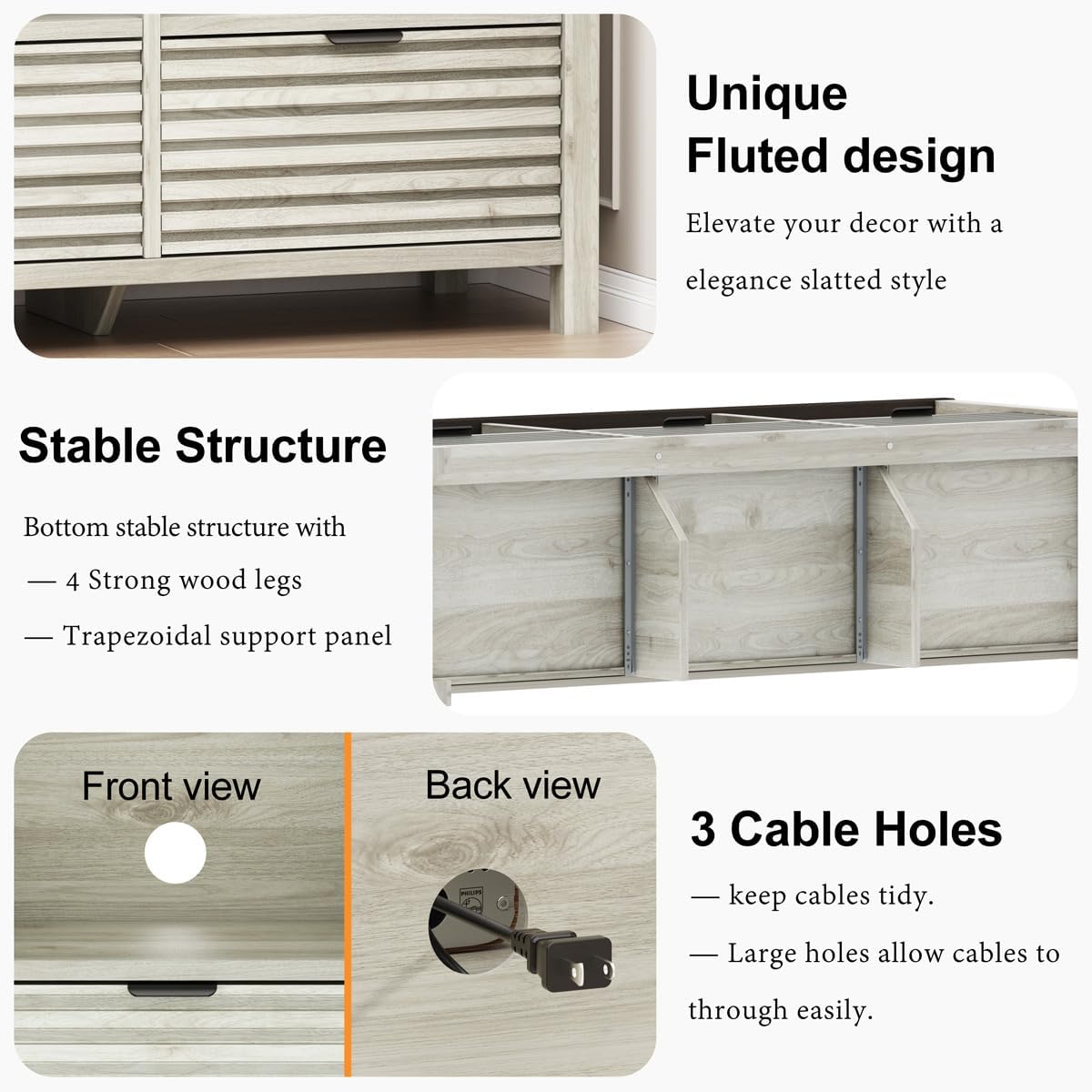 BON AUGURE TV Stand, Fluted Modern Media Console for 65 55 50 in TVs, Farmhouse Wood Entertainment Center with Storage Drawers for Living Room,Bedroom (Walnut Washed Grey)