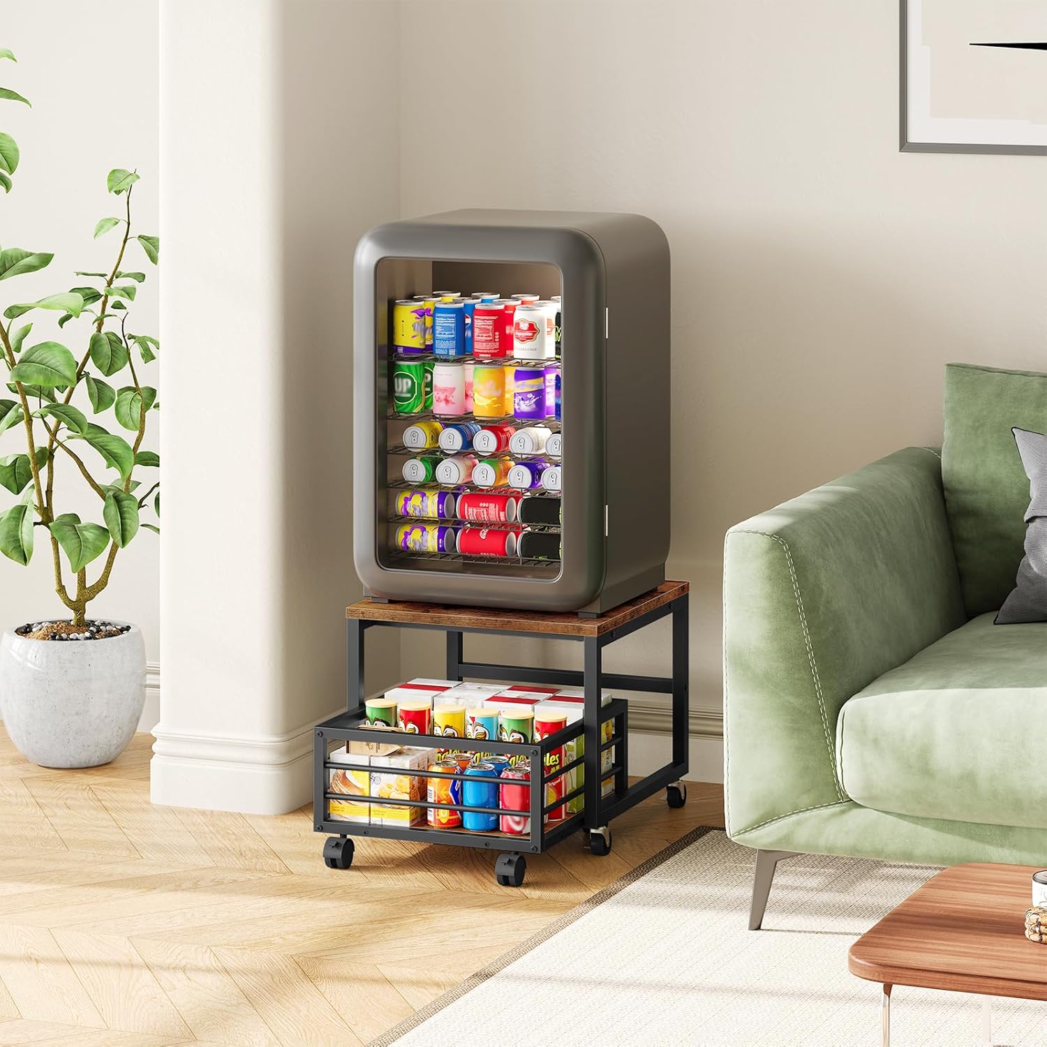HOOBRO Mini Fridge Stand with Movable Storage Basket, Mini Fridge Cabinet with Wheels and Adjustable Feet, Sturdy Metal Frame, for Home, Apartment,Office, Dorm, Rustic Brown and Black BF155TL01