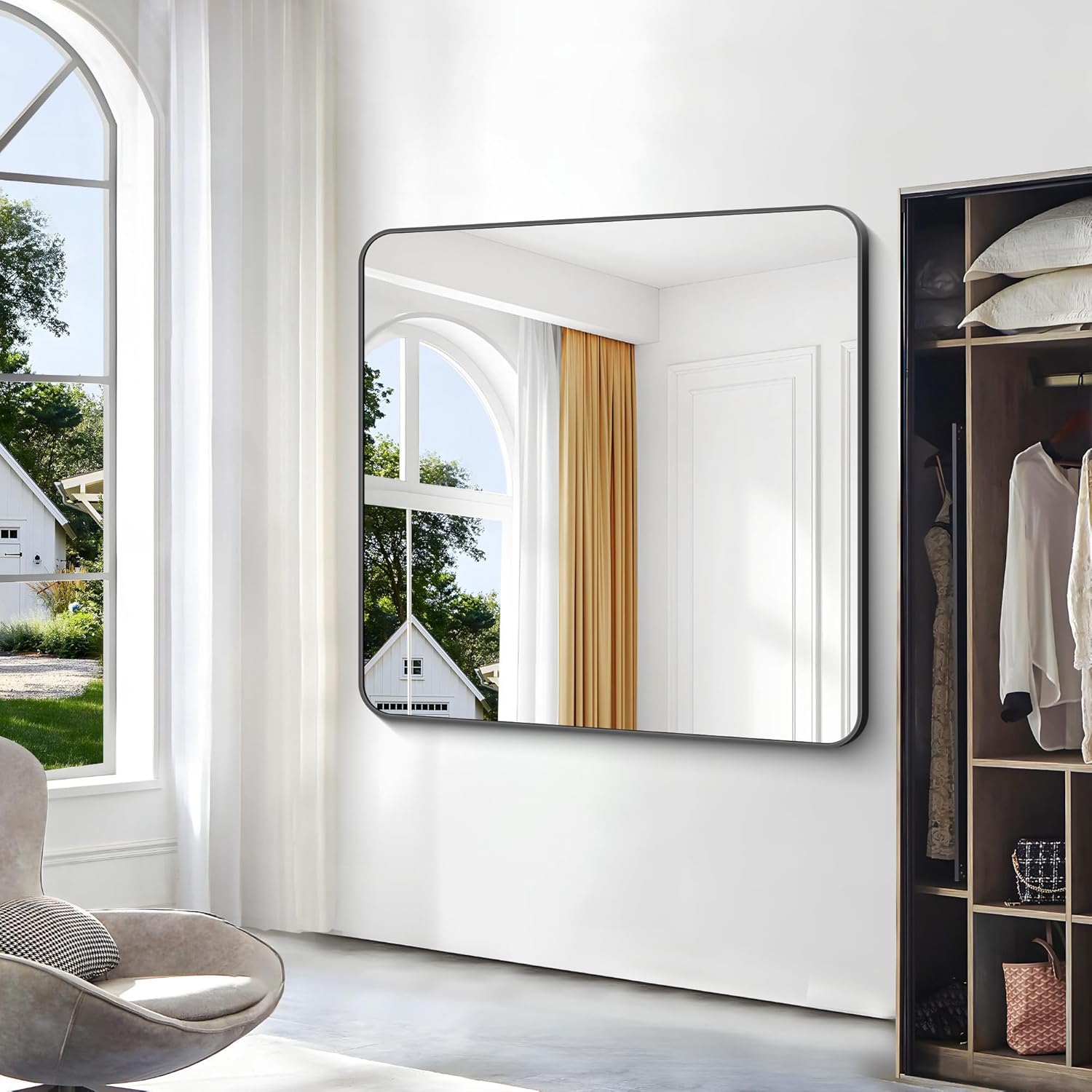 - ROUNDED CORNER DESIGN : The 48x48 inches mirror features an elegant rounded corner design and measures 48" x 48". Its unique shape adds a touch of sophistication and upscale beauty to your home.