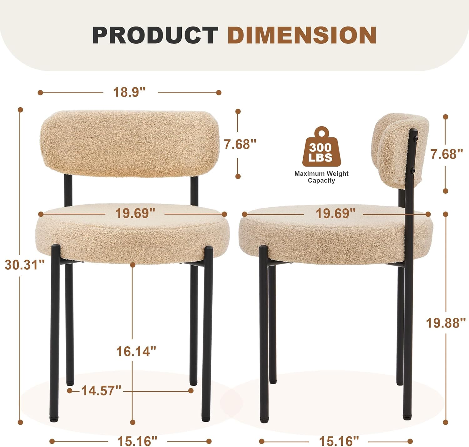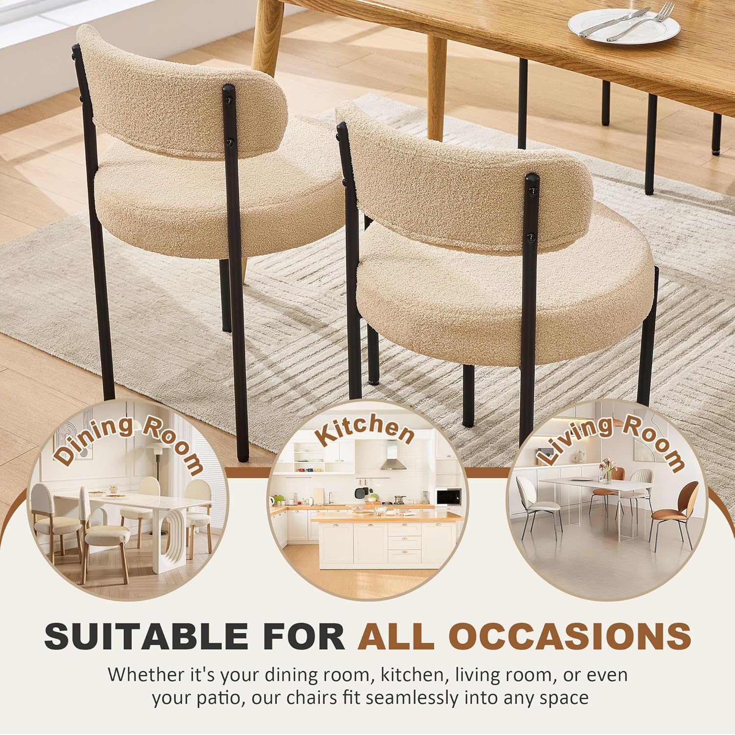 Dining Chairs Set of 4, Beige Boucle Dining Chair, Curved Backrest Upholstered Dining Room Chairs with Black Metal Legs, Mid Century Modern Dining Chairs for Kitchen, Living Room, Beige