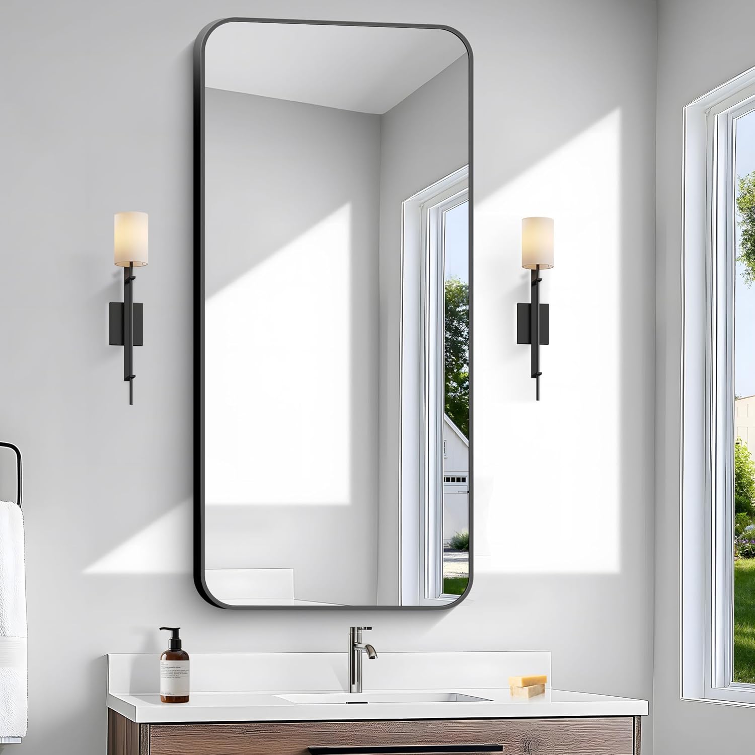 - ROUNDED CORNER DESIGN :The 24x48 inches mirror features an elegant rounded corner design and measures 24" x 48" Its unique shape adds a touch of sophistication and upscale beauty to your home.