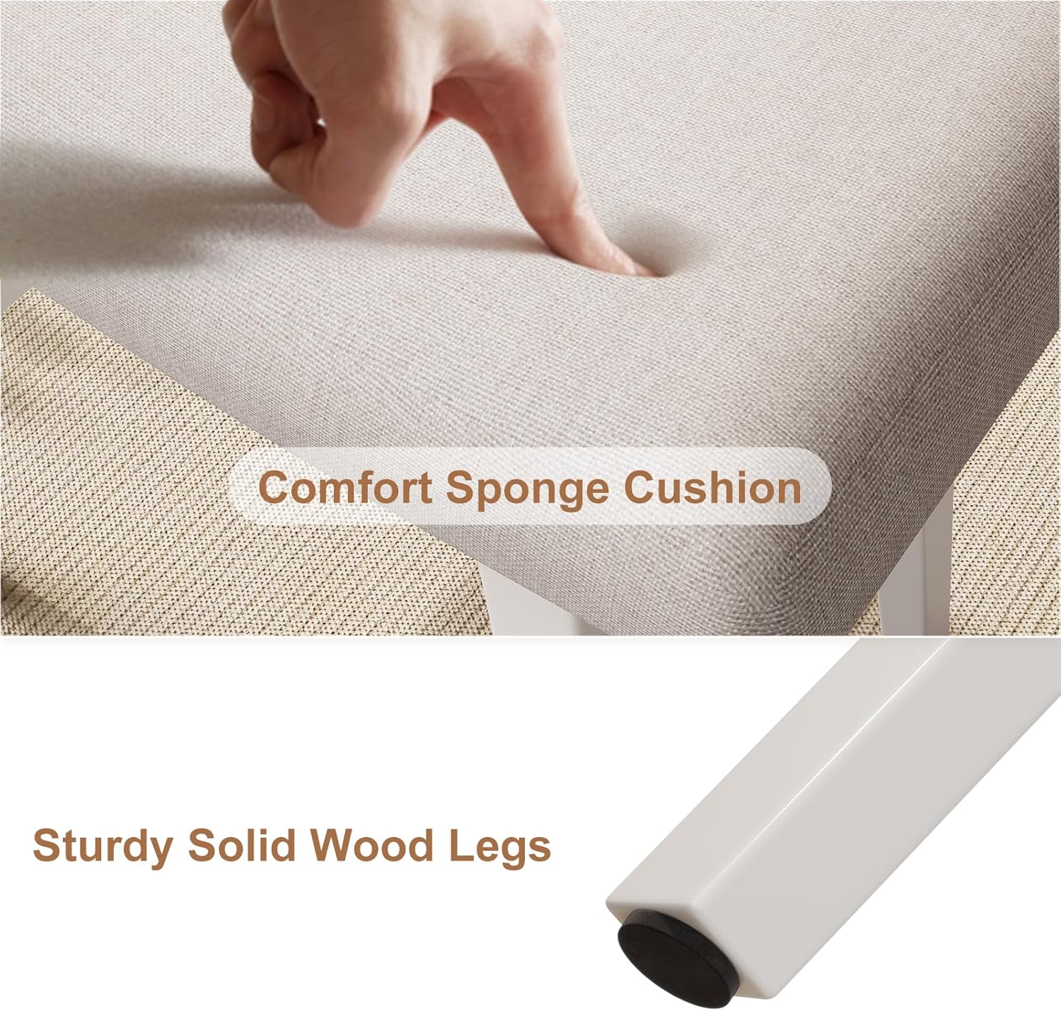 Solid Wood Small Vanity Stool, Compact Makeup Chair with Saddle Cushion, Linen-Covered High Rebound Sponge Seat, Easy Assembly Footstool for Bedroom, Entryway, Home, White