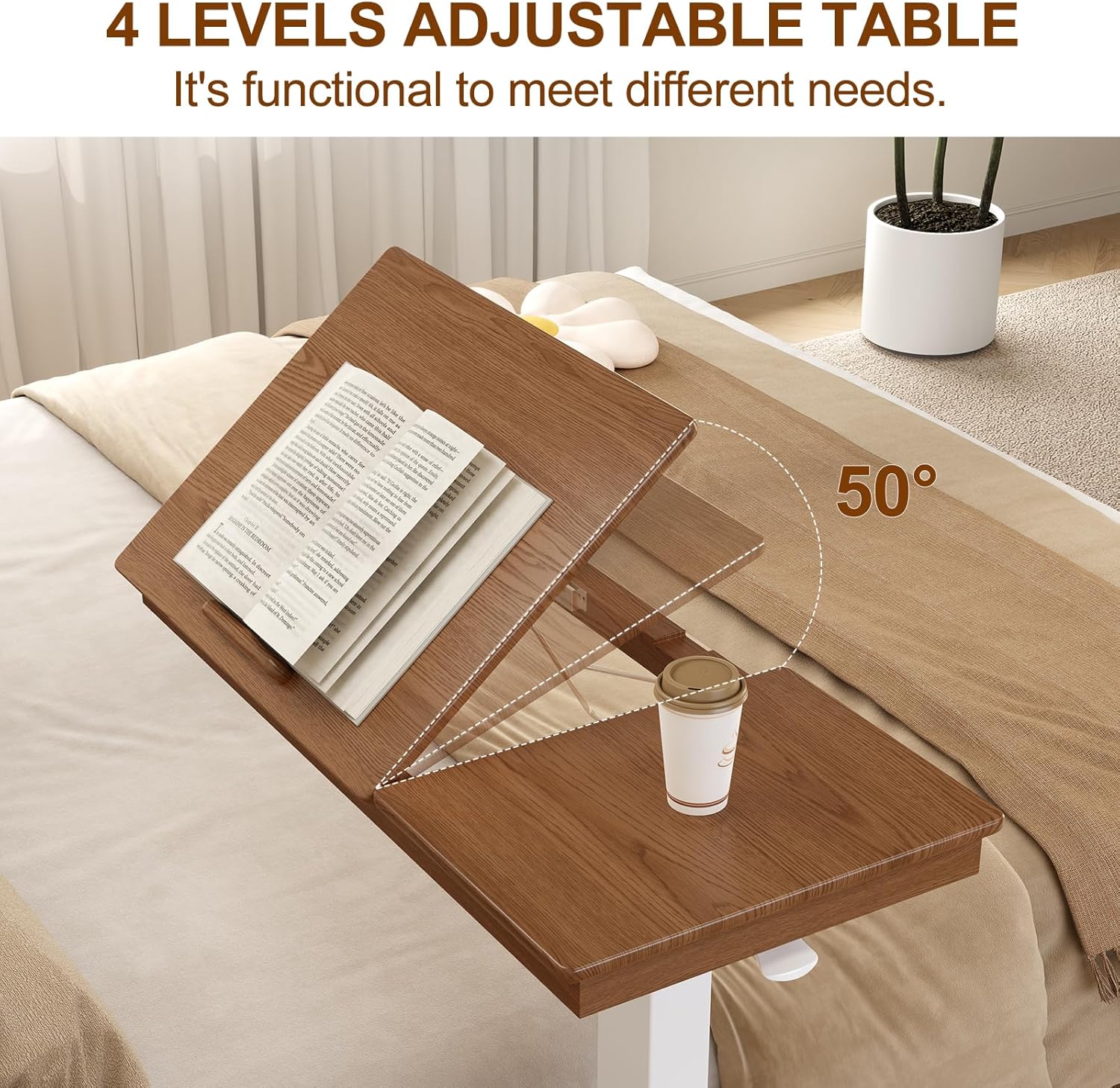 - 【Multi-function in One Design】An overbed table with wheels, featuring a desktop adjustable from 0° to 50°, caters to your daily routines. It can be used as a computer table, laptop table, children's study desk, drafting table, and nursing table