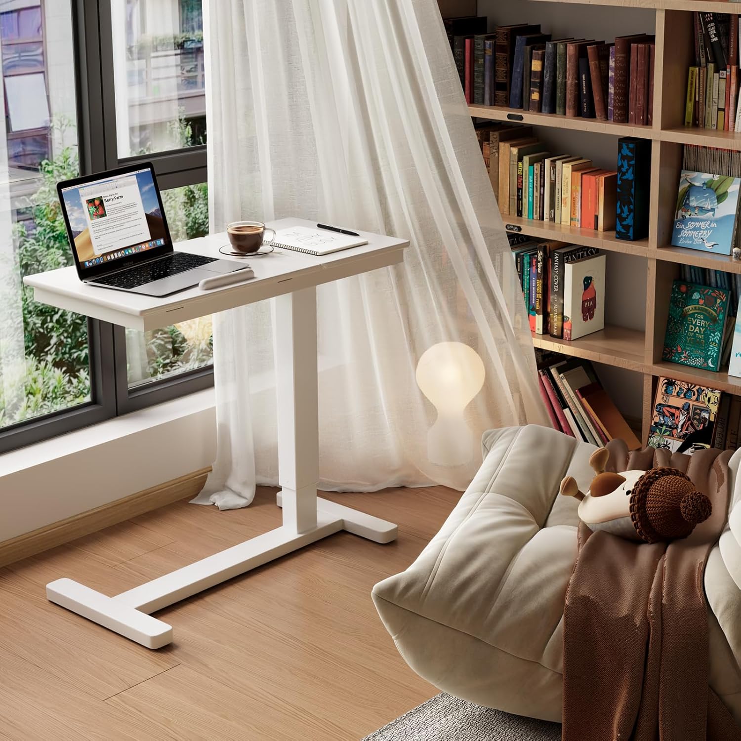 - 【GAS SPRING PNEUMATIC LIFT SYSTEM】Effortlessly glide from 27.6 to 43.3 inches with just one hand, thanks to our gas spring pneumatic lift. Ideal for families seeking the ultimate flexibility, the adjustable bedside table with wheels effortlessly adapts to any height, ensuring an ergonomic upright work posture whenever you need it