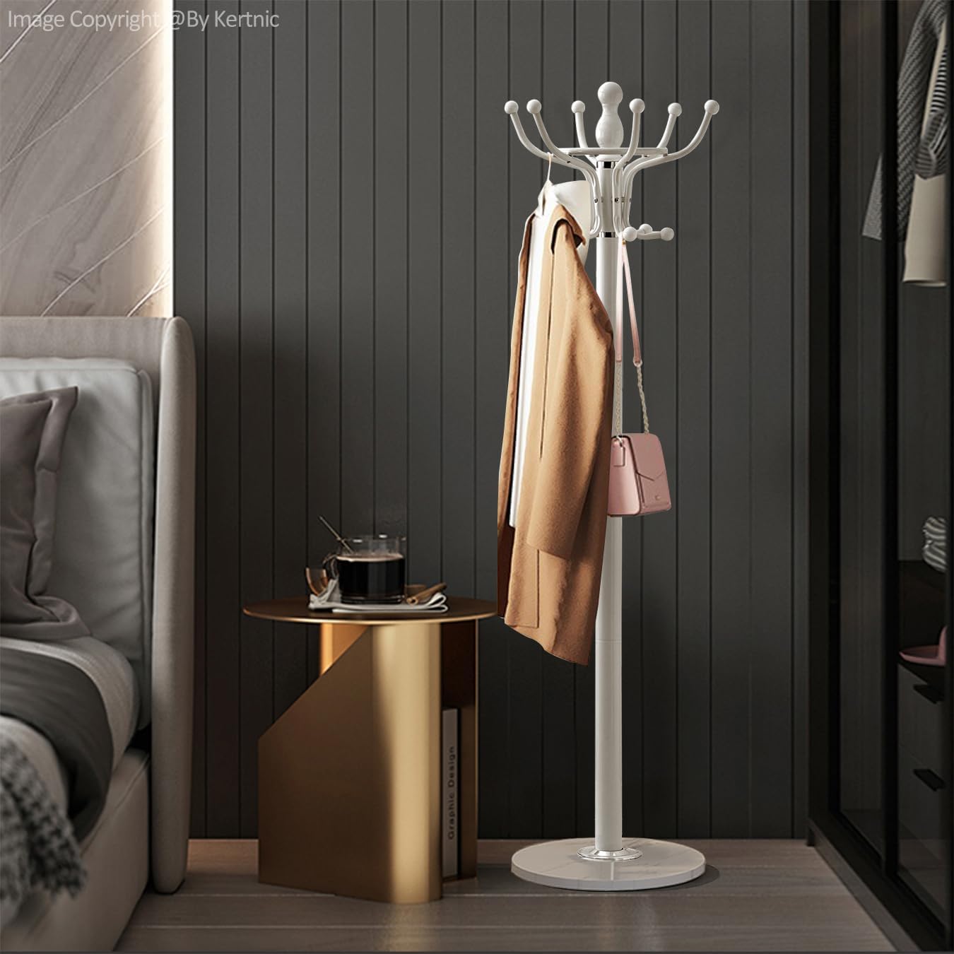 Kertnic Freestanding Coat Rack with 16 Hooks & Marble Base - Heavy Duty Metal Hall Tree Stand for Entryway, Hats, Coats, Bags Rack- Modern Hanger Organizer for Home, Office, Dorm (16 hooks -White)